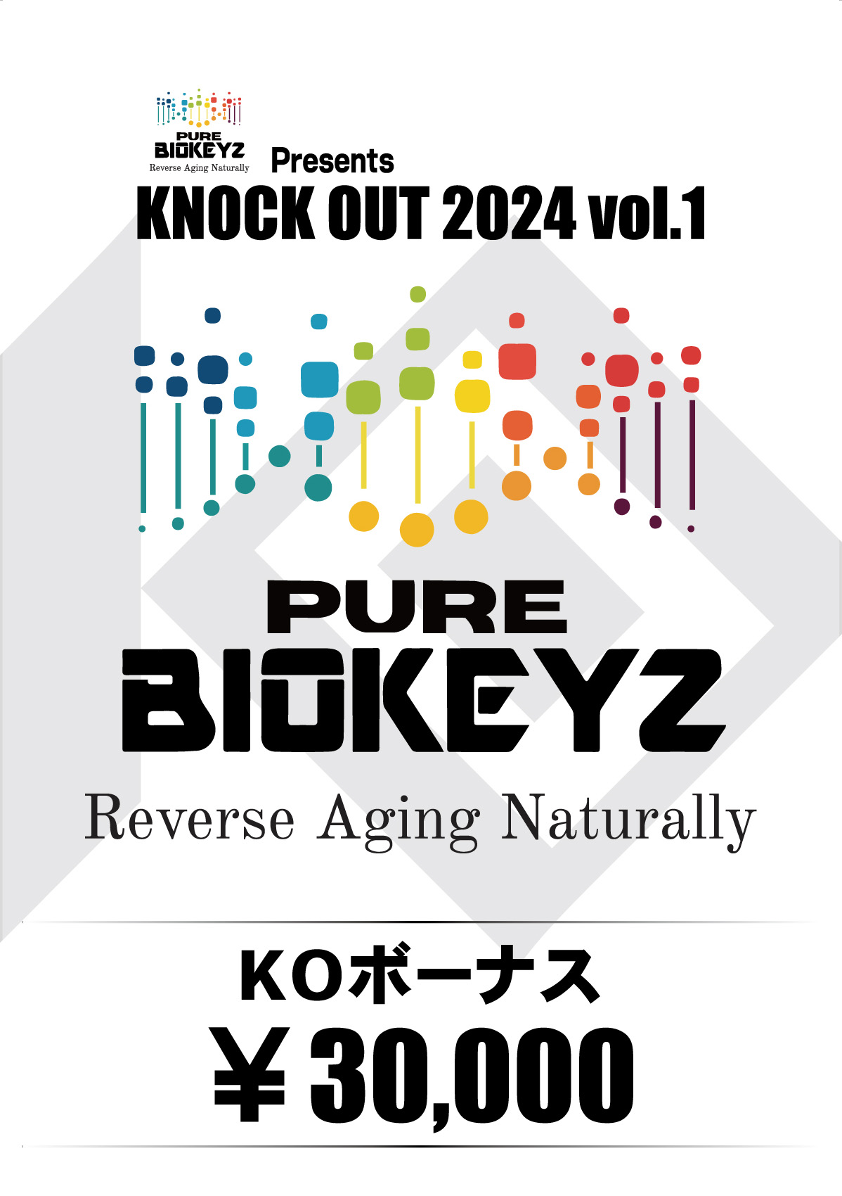 2024年2月25日(日)後楽園ホールで行われるPURE BIOKEYZ presents KNOCK OUT 2024 vol.1では、全試合対象の「KOボーナス」が贈られます。