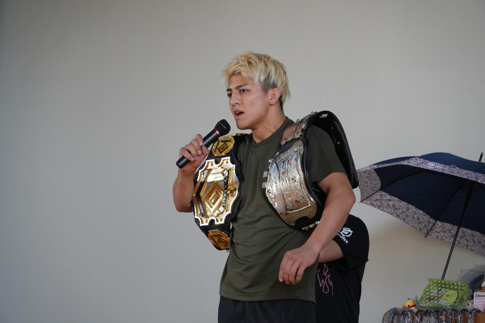 そして4月29日有明アリーナで行われた「RIZIN.46」フェザー級タイトルマッチにて金原正徳戦を1RKO勝利で飾り、再び能登に行きたいと自ら提案。
