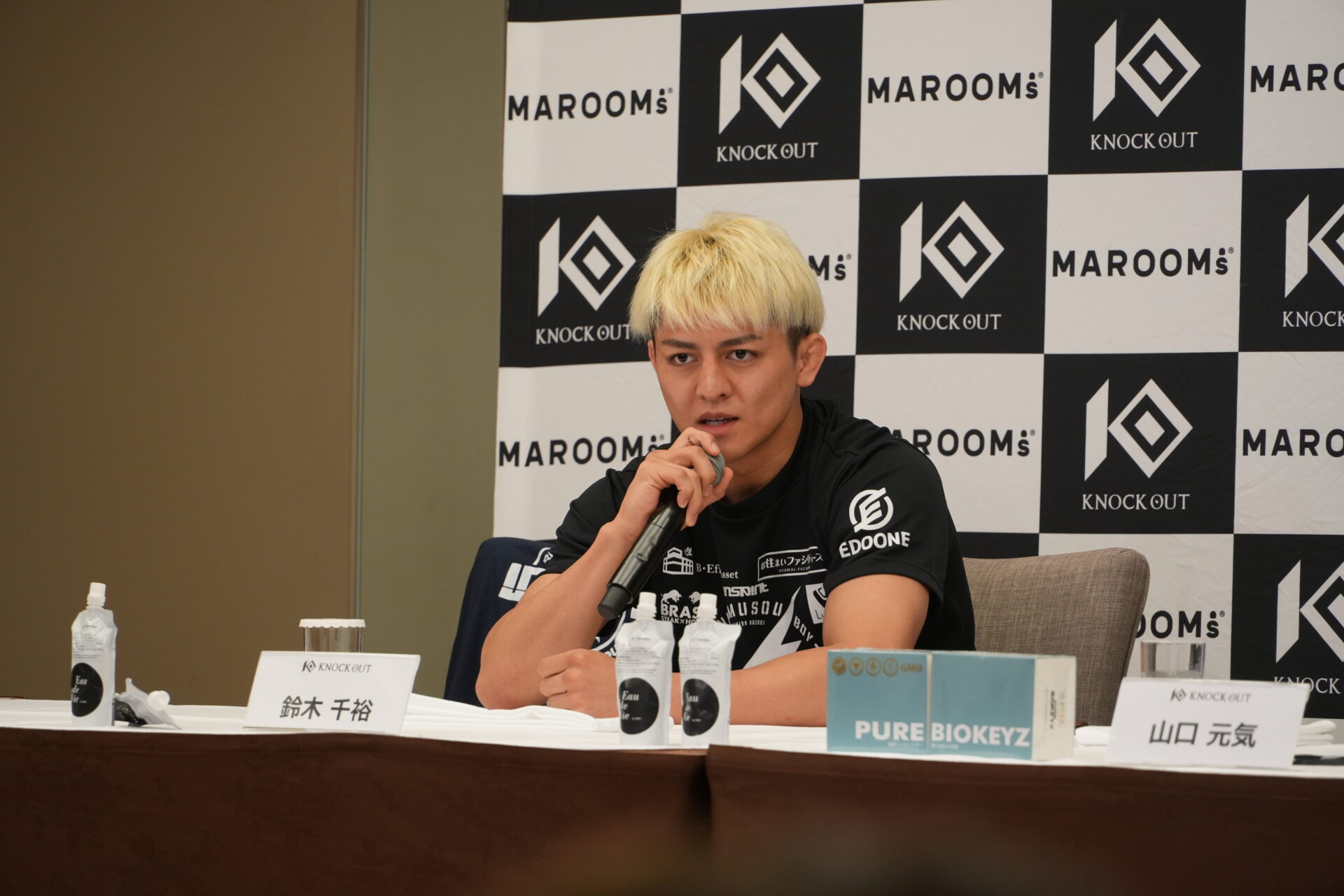 会見に出席した鈴木は「KNOCK OUTらしい試合を見せる。KO、それだけですね」とKO宣言。前回の会見より、身体を絞って登場した五味の印象を問われ、「やっぱり痩せましたね。90kg近くから落とすのは、相当練習しないといけない。面白い試合になるな、楽しみです。PRIDEの時の五味さんと戦えるのは楽しみです」とワクワクしている様子。