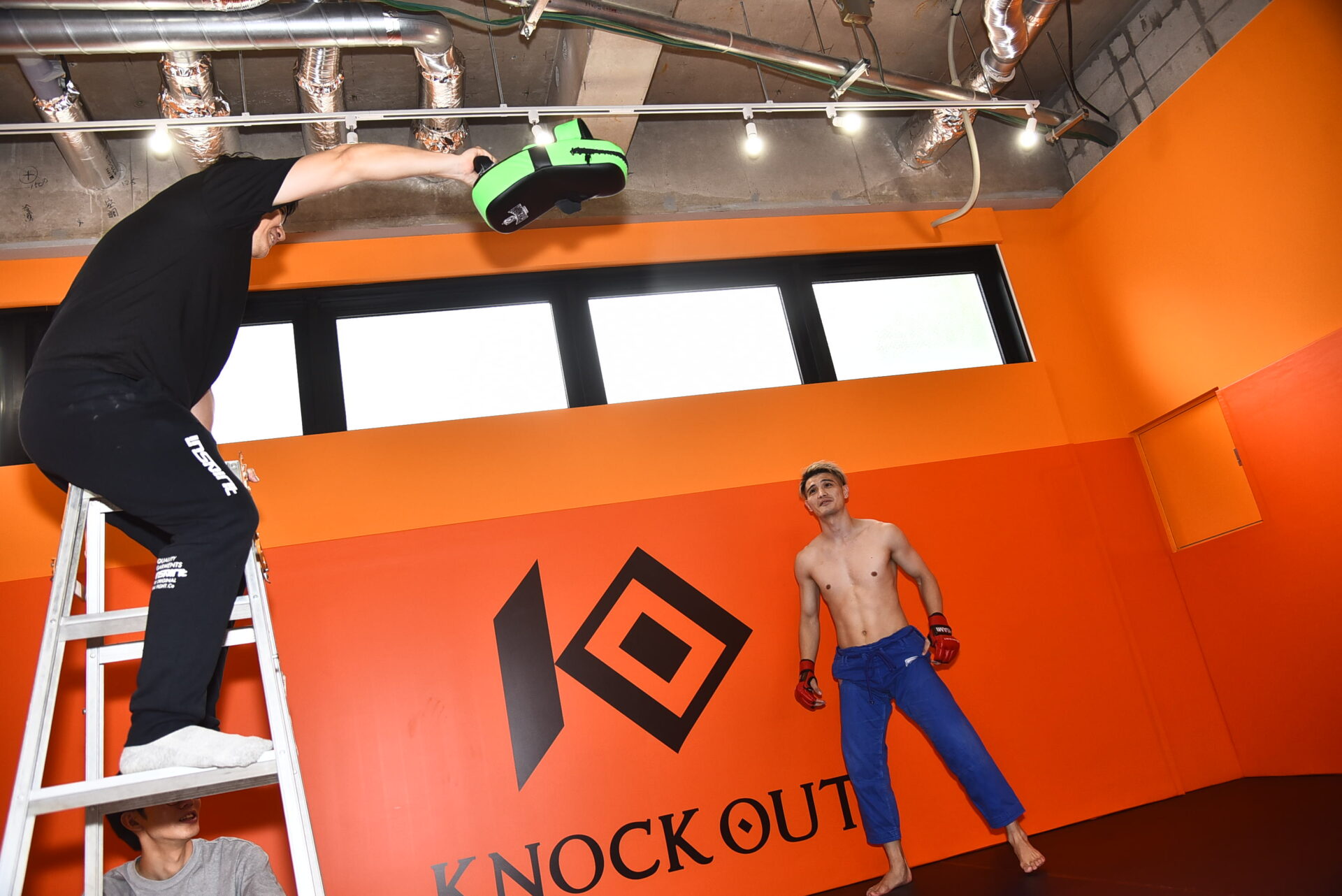 今回の試合に向けて強化していることに関しては「飛びヒザ一択」といい、公開練習では用意された三脚にKNOCK OUT・山口元気代表がよじ登ってキックミットを持つと、そこに目掛けて栗秋は高々とジャンプして2メートル級の高さの飛びヒザをクリーンヒットさせた。