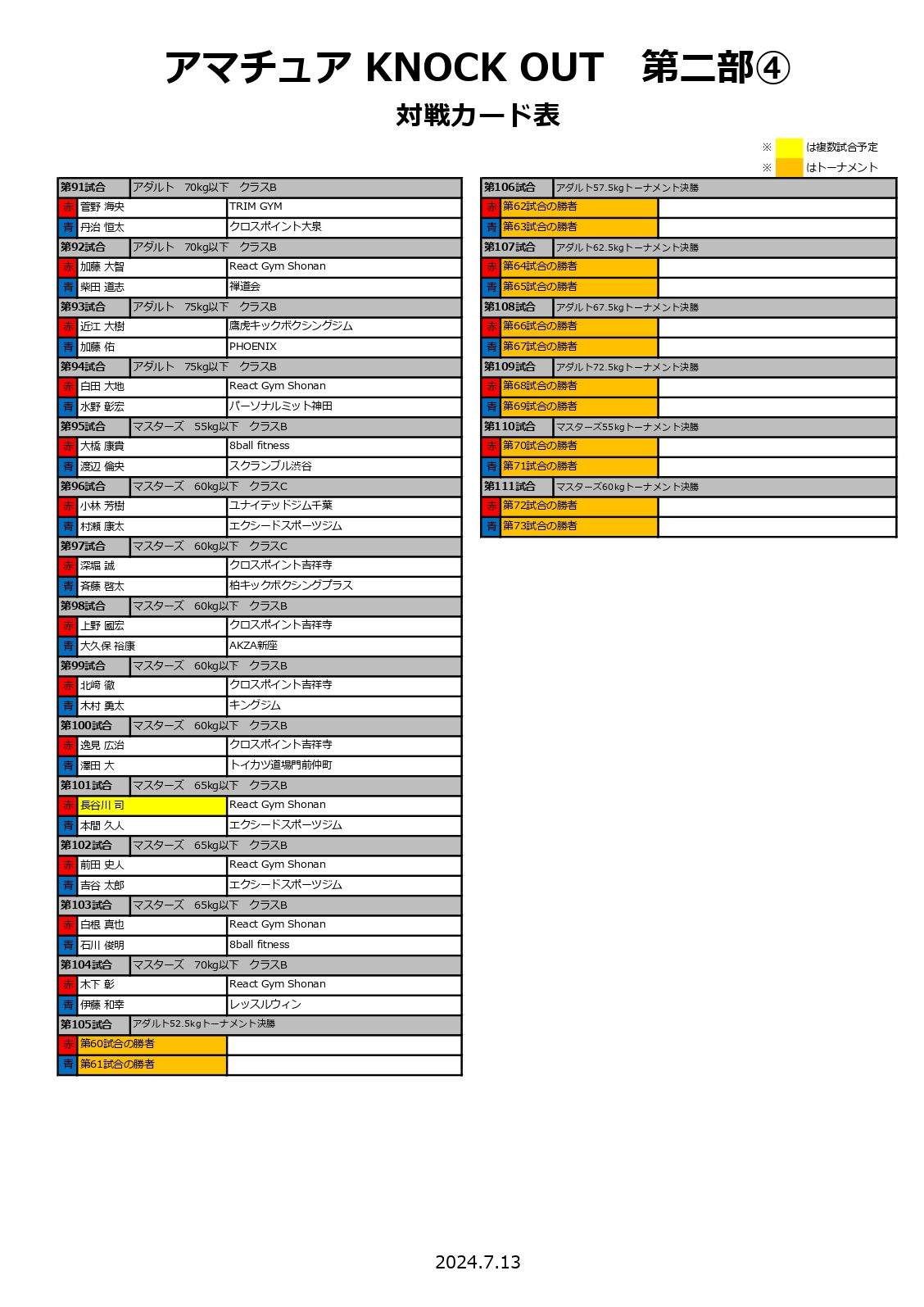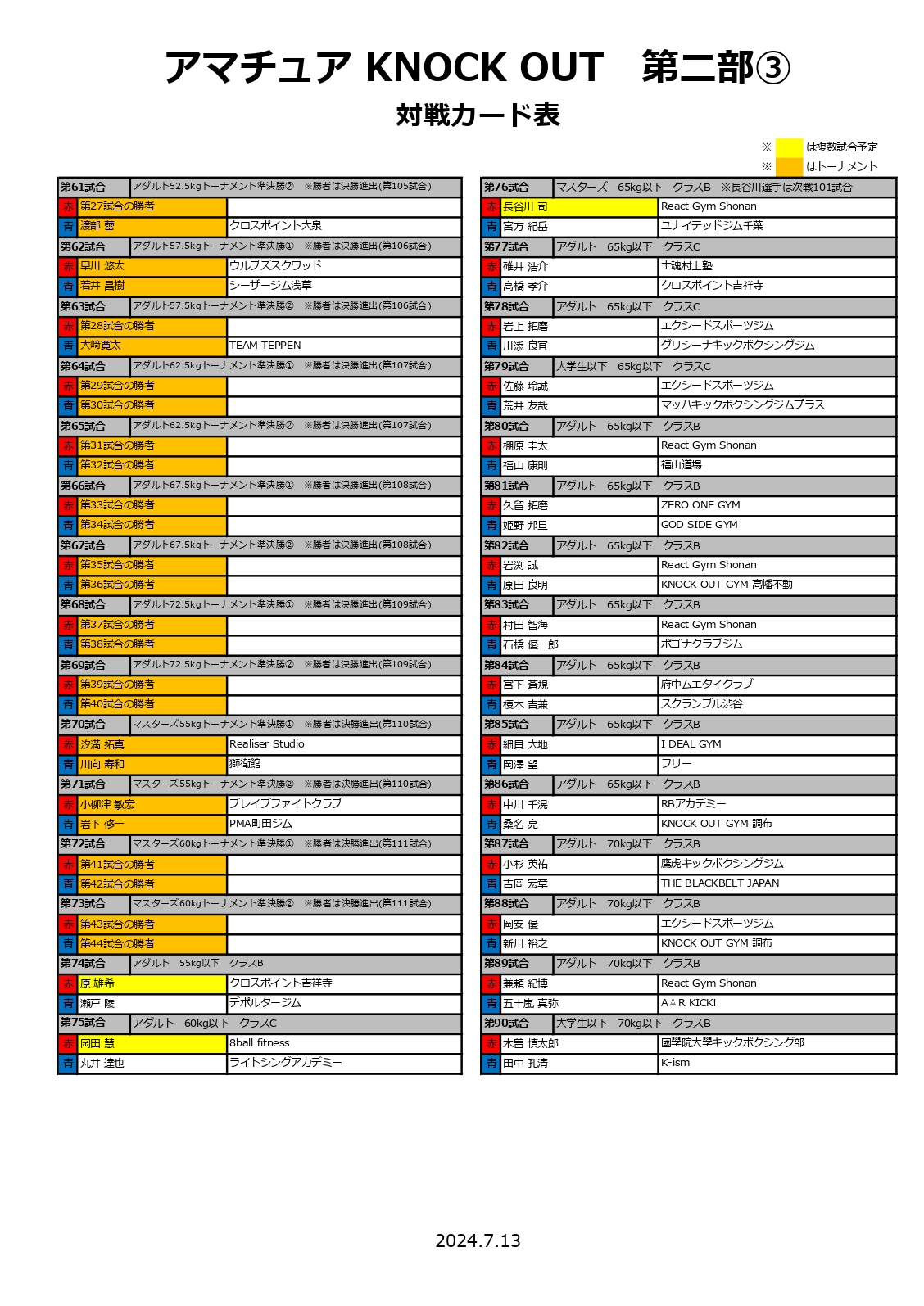2024年7月13日(土)に新宿FACEで行われます「KNOCK OUTアマチュア」の対戦カードが決定いたしましたので、お知らせいたします。