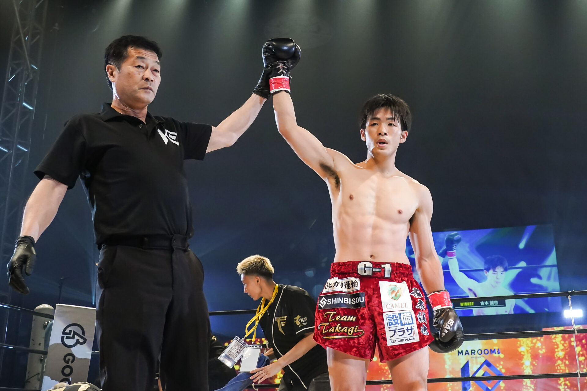 古木 最初にちょっとテンポを狂わされて、やりにくいなと感じてたんですけど、最終的にKOできたし、練習していた左フックが最後に入って、結果的にはうまくいったので、よかったと思います。