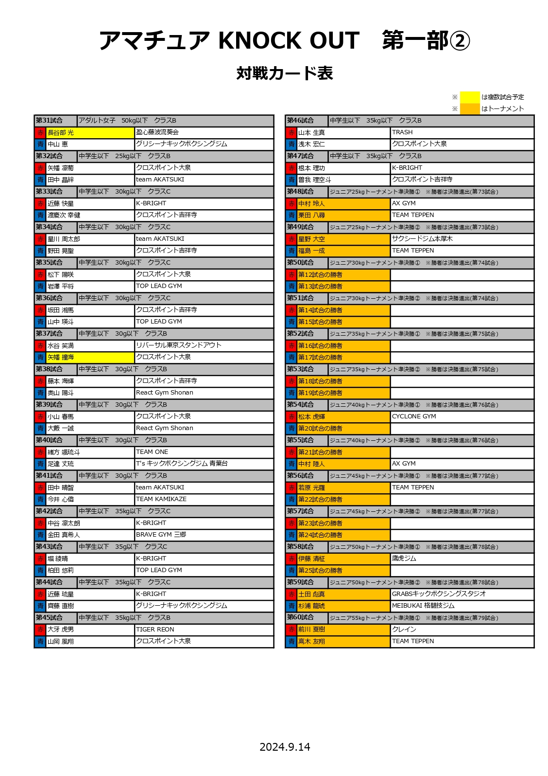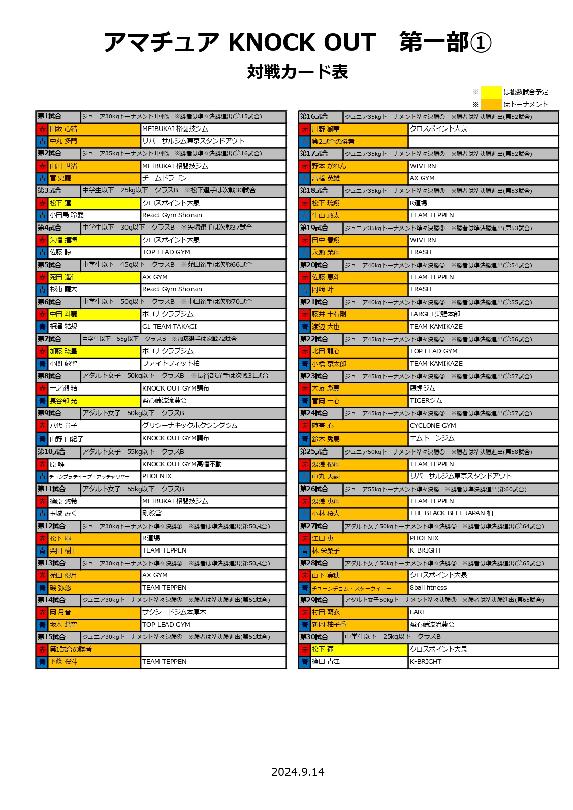 2024年9月14日(土)に新宿FACEで行われます「KNOCK OUTアマチュア」の対戦カードが決定いたしましたので、お知らせいたします。
