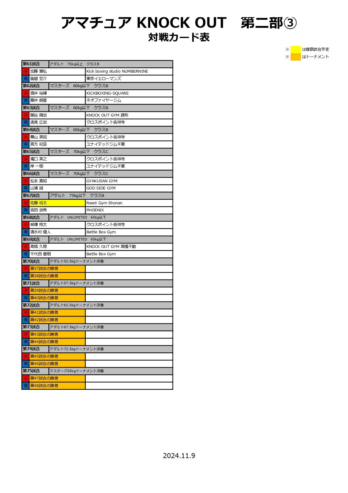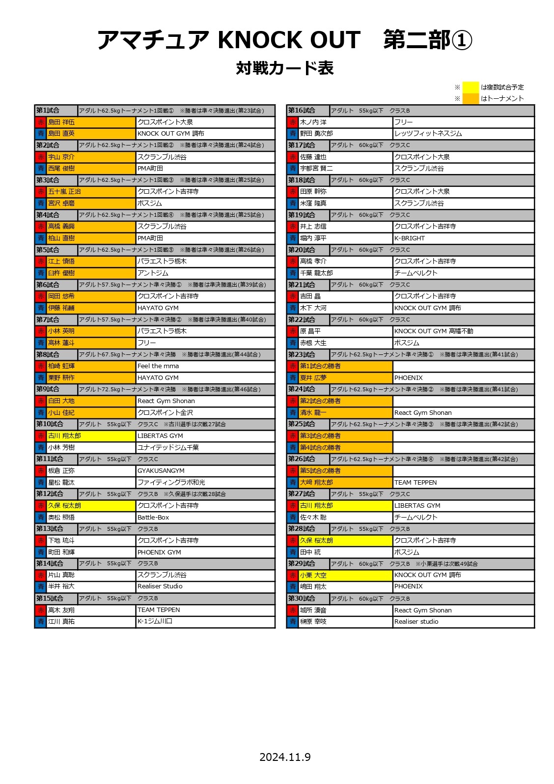 2024年11月9日(土)に新宿FACEで行われます「KNOCK OUTアマチュア」の対戦カードが決定いたしましたので、お知らせいたします。