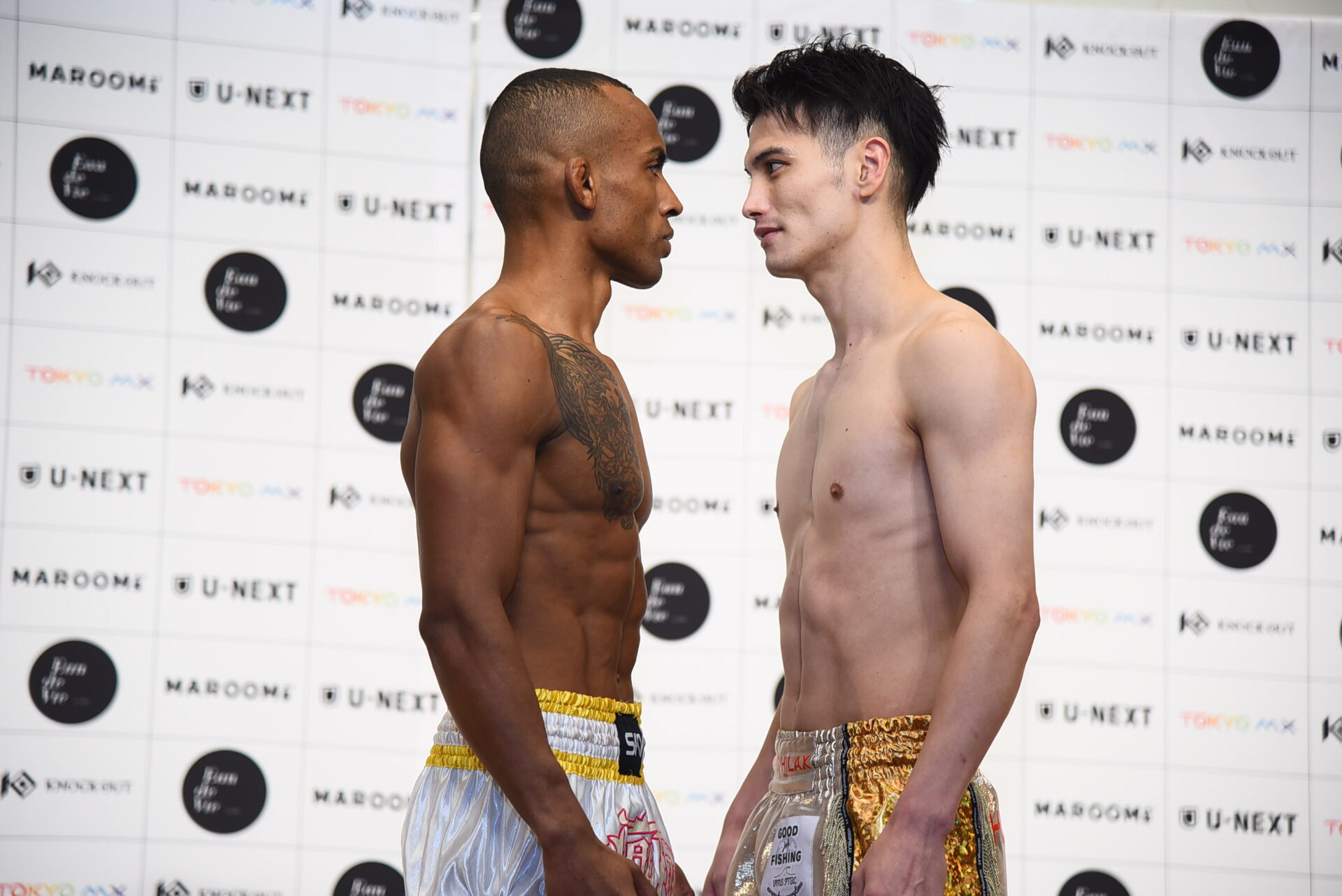 カルロス・モタ(ブラジル)=57.55kg 「祥梧選手はすごくいい選手で、ポテンシャルもあって非常に楽しみです。明日すごくいい試合をしますので、応援よろしくお願いします。 (計量会場で相手を見た印象)私は彼をSNSで見たことがあり、実際に会って同じ印象を受けました。自分を見直してやってきたので、栗秋選手がやってくることを二倍にして返したいと思います。 (UNLIMITEDルールに向けてどういう練習をしてきたか)今までやってきたルールとは違うんですけれども、今までやってきたルールに似ているところもあるので微調整は確かに必要でした。ただ試合が楽しみでしょうがないという部分で、非常に楽しく、いい試合が出きたらなと考えています」