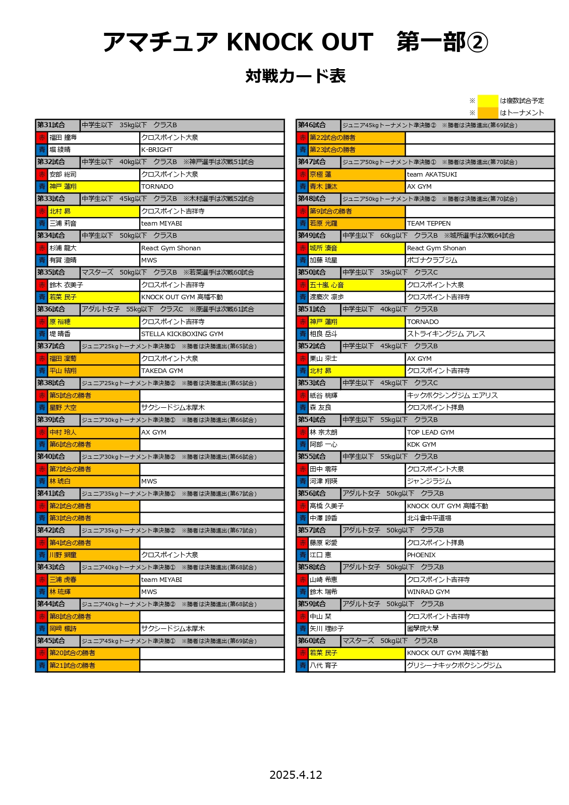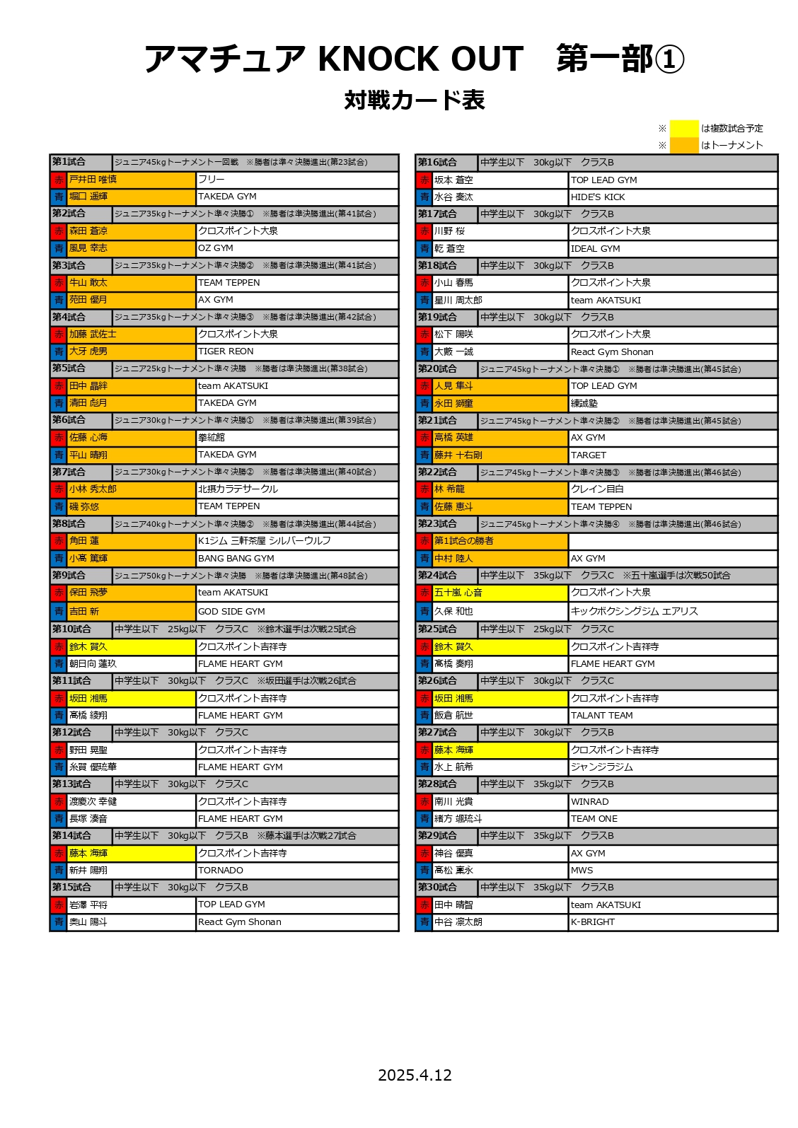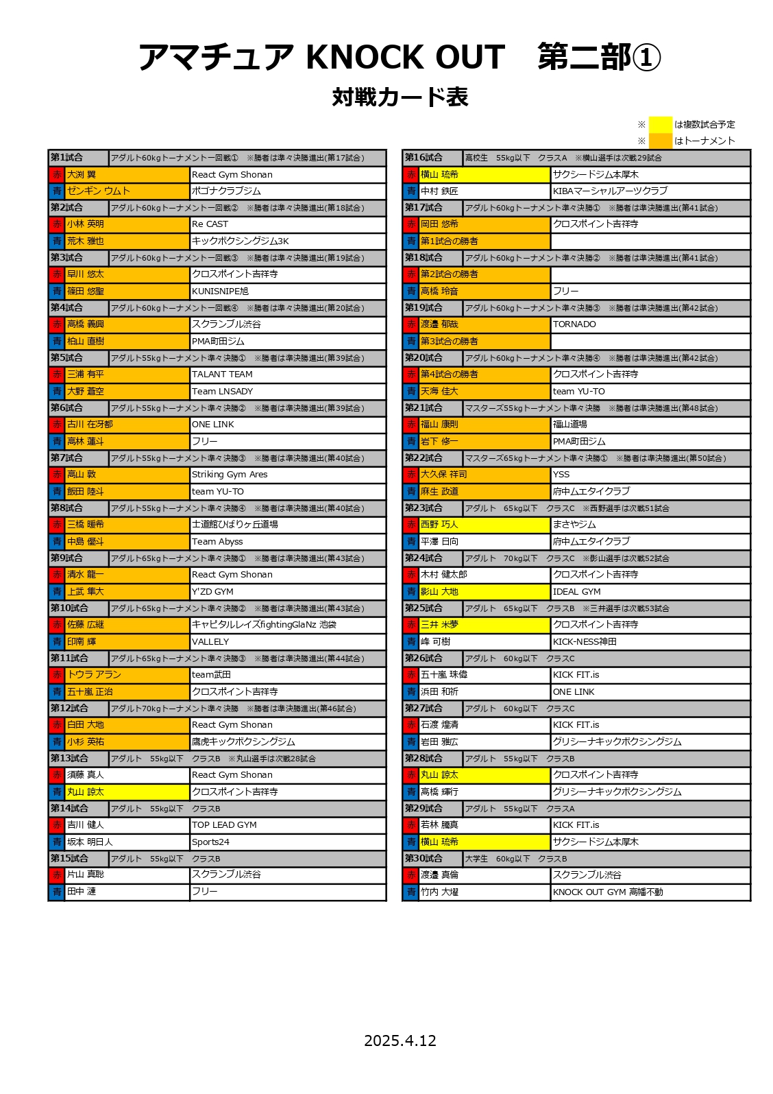 2025年4月12日(土)に新宿FACEで行われます「KNOCK OUTアマチュア」の対戦カードが決定いたしましたので、お知らせいたします。