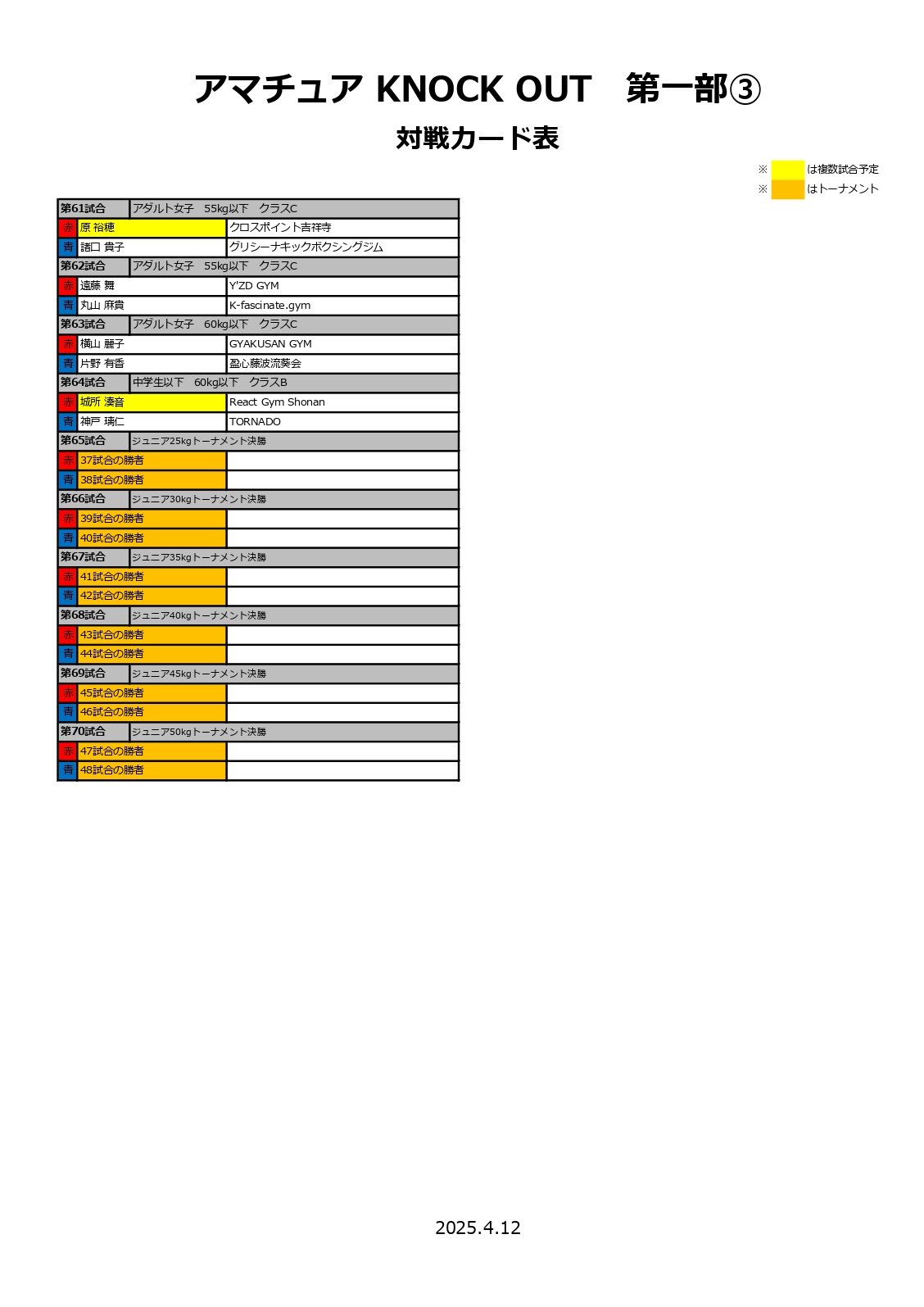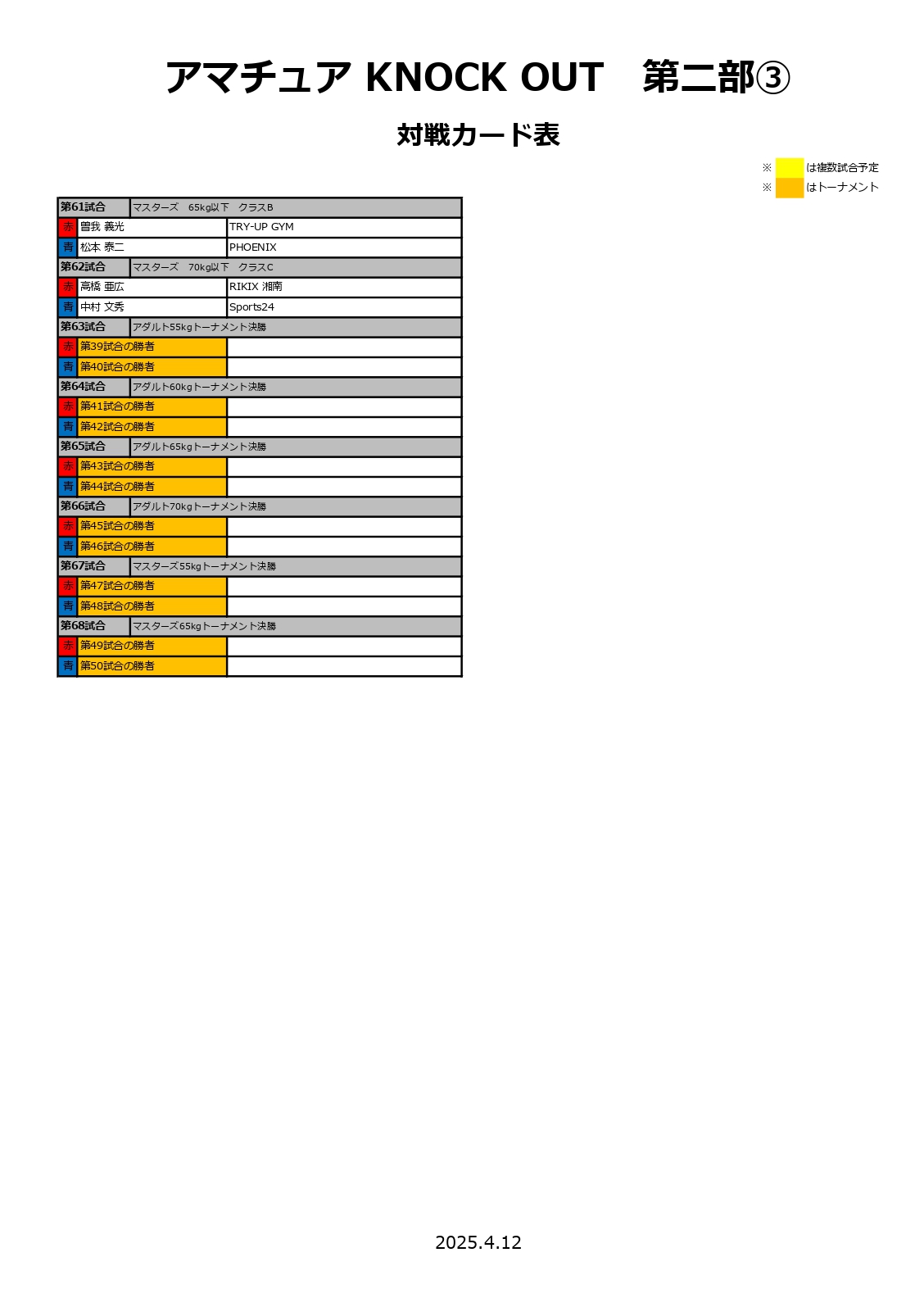 ▶選手・セコンドの皆様は、試合が終わりましたら順次ご帰宅ください。