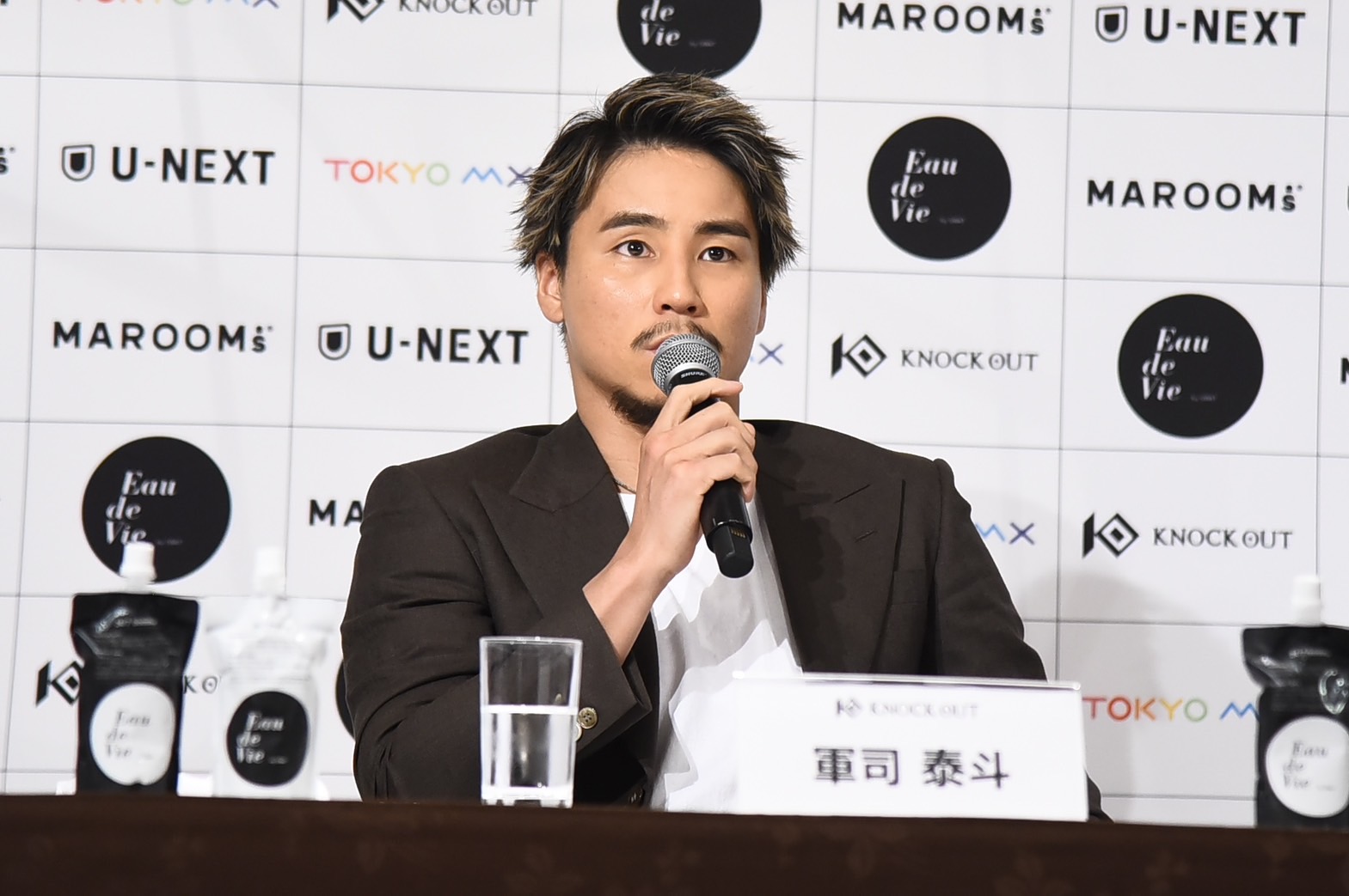 同席したKNOCK OUT・山口元気代表は「軍司選手と親交のある選手から軍司選手が試合をしたいという相談を受け、しっかりK-1さんとも話し合って参戦が決まりました。軍司選手のKNOCK OUT参戦の理由が、オープンフィンガーグローブ(以下OFG)のREDルールをやりたいということで、KNOCK OUTのリングを選んでもらいました」と軍司のKNOCK OUT参戦の経緯を説明。
