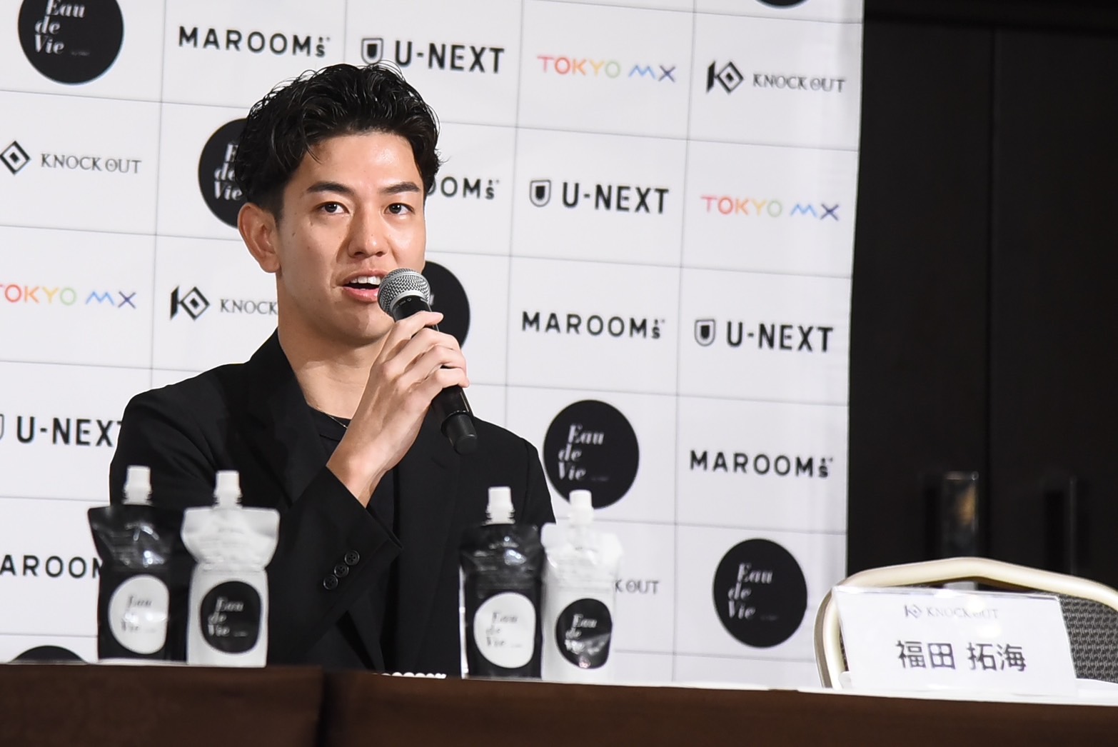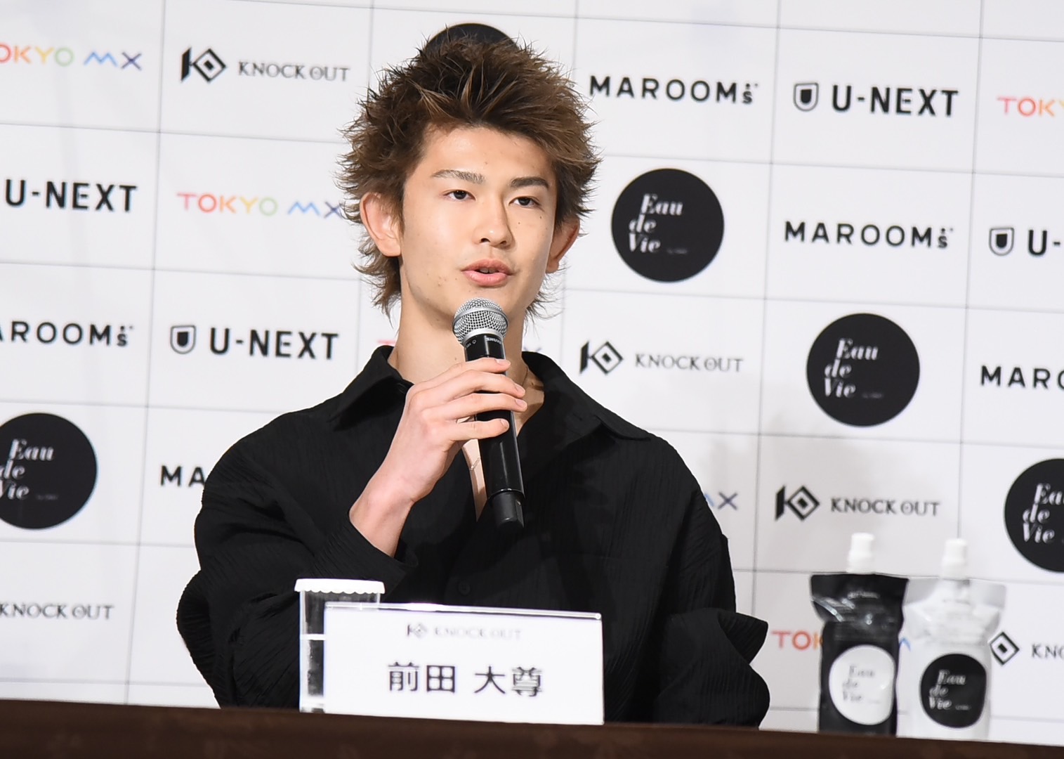 前田大尊 「前回、初めての引き分けだったんですけど、本当に試合終わった後も数日間気持ちが煮え切らない状態で、本当にもどかしくて、すぐにでも再戦がしたくてたまりませんでした。 この再戦をしっかりと掴み取ってチャンピオンを狙っていきたいなと思っているので、応援お願いします。 (前回対戦した印象)試合映像を見る限り、KOで倒しているシーンが多くて、その一発とかは警戒していたんですけど、あまりアグレッシブに来なかった印象があります。カーフキックが脅威なので、前回ではなかったような作戦を練って、しっかりと圧勝して勝ちたいなと思っています。 (福田から判定を狙ってくると言われたことについて)僕自身はKOする戦い方、勝ち方というのをすごく最近は模索してるんですけど、なかなか難しいところです。でもやっぱりそこを求めないで勝ちだけに逃げてしまう戦い方をしたら、つまらなくなってしまうと思うので、勝ち方をしっかりと追求しながら、その中で倒せるものをしっかりと見つけて、それを試合で掴んでいきたいと思っています。 (タイトルマッチに向けての思い)チャンスってほいほいやってくるものじゃなくて、しっかりタイミングとしてやってくるものだと思っていて、それをしっかり逃さないように絶対に獲りに行きたいという思いはありますし、記念すべき一発目のベルトがKNOCK OUT。これはもう本当僕が夢見てるものでもあるので、しっかりと実現させたいと思います」