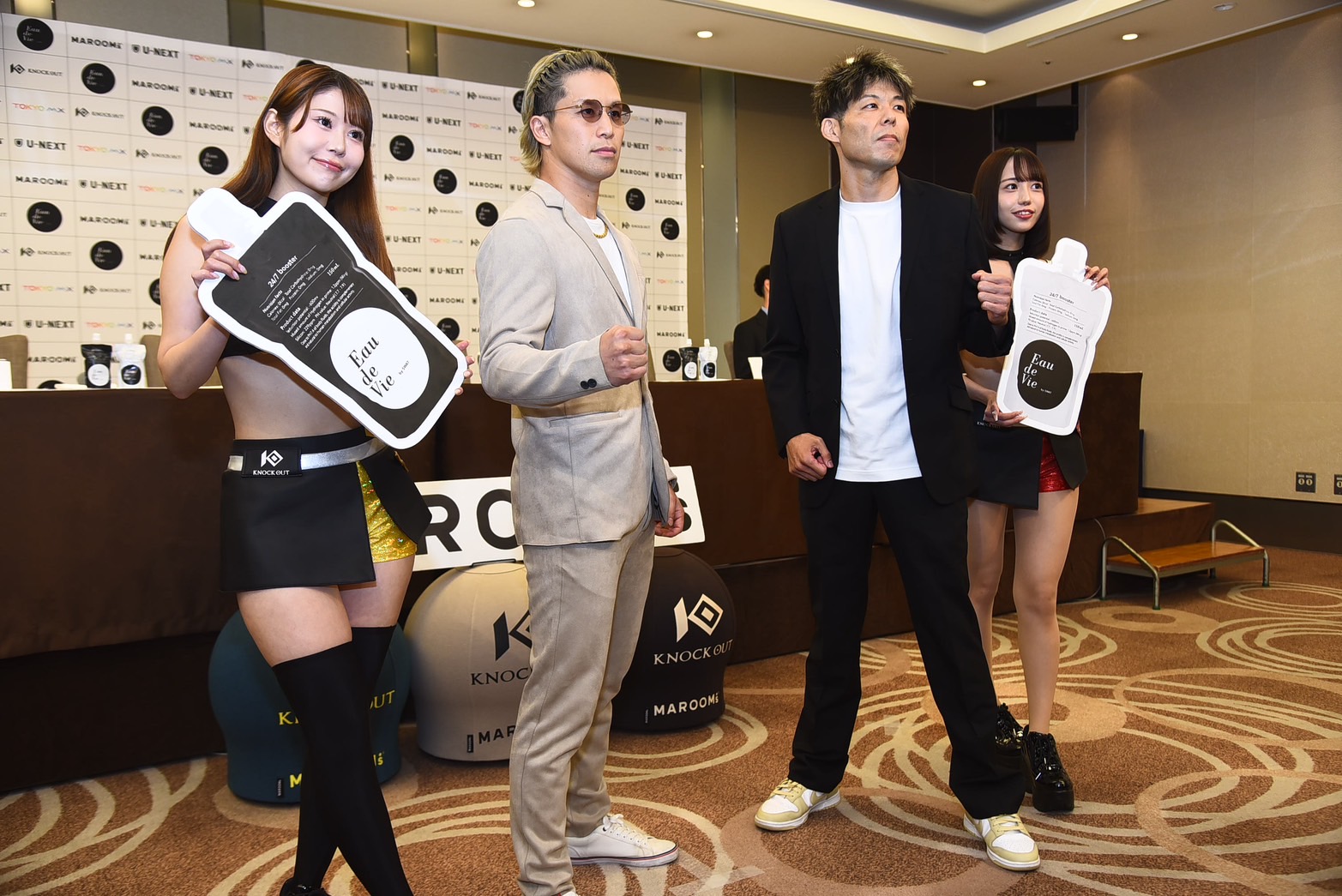 中島は「明日はスーパーウェルターのチャンピオンを決めるふさわしい試合を見せようと思っています。KNOCK OUTでは10戦目ぐらいです。今まで積み上げてきたものがあり、ここで負けちゃうと意味がなくなっちゃうので、明日は必ず獲りたいと思います」といえば、漁鬼は「今年KNOCK OUTの選手で数名倒したい相手がいるので、まずは中島選手を倒してどんどんみんなを倒していこうと思っています」とそれぞれが意気込みを語る。