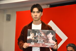 なお、佐賀在住のためにこの日の会見に欠席となった古村からは「今回も試合のオファーを頂きありがとうございます。潘選手は技術力の高いテクニシャンなので、自然とレベルの高い戦いになるのではないかと思っています。最近は派手なKOがお見せできていないので、必殺技を開発中です。今回、最後は僕が潘選手を倒してタイトル挑戦に王手を掛けます」とコメントが届いている。