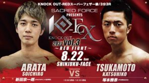 龍聖は6戦6勝全KO勝ちのパーフェクトレコードをマークしていたが、前回3月大会で大脇武に判定勝ちして以来、5カ月ぶりの試合。対する井上は11戦無敗の記録を更新していたが、6月のシュートボクシングで初黒星を喫し、現在の戦績は12戦7勝(3KO)1敗4分。両者とも2001年生まれの若手同士のメインイベントとなる。