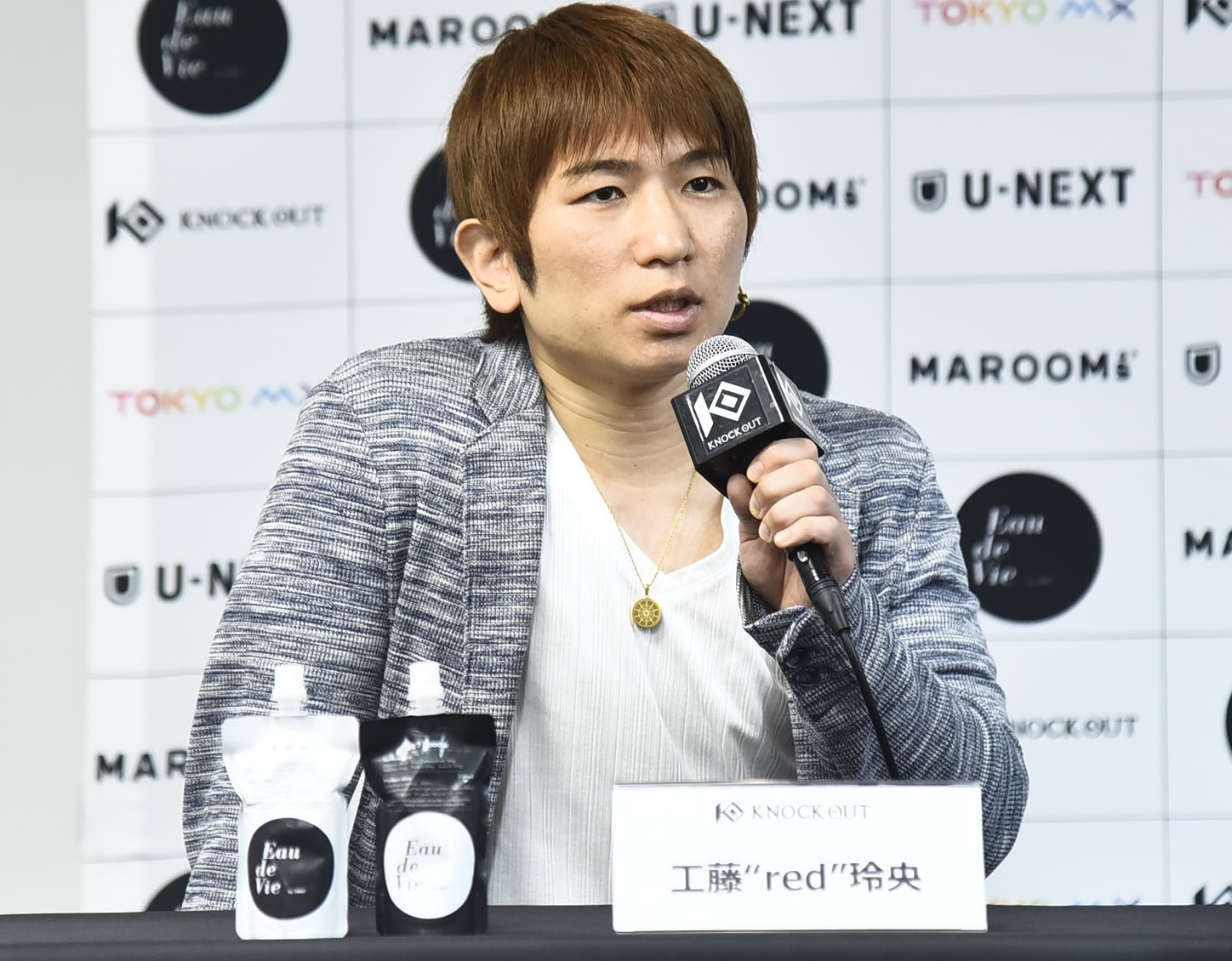 工藤“red”玲央 「7月20日は必ず勝ちます。 (対戦相手の印象、試合で気を付けるところ)動画を見て、山口さんが噛み合うと言っていた通りだと思うし、3月の大会ではパンチのラッシュでしっかり前に詰めてきてアグレッシブなファイターだと思ったので、自分が下がらないことをちょっと頭に入れて練習してます。前回、ジムの後輩たちやいろんな方々にサポートしてもらって無事に勝てたので、もちろん自分は本当にしっかりやるだけなんですけど、今回もしっかりこの人たちの力を借りて今回も絶対に勝ちます。 (前回久々の勝利で感じたことは)シンプルに嬉しかったですね。何かの呪いから解き放たれたみたいな、そんなような感覚がすごくて、格闘技人生で一番嬉しい勝ちでしたね。デビュー戦も勝ったんですけど、その時よりも嬉しかったですし、それが今年で終わっちゃうのかと思いました。 (今年で引退することも見据えて、この試合を含めてどうしていきたいか)前回、勝った時には何も考えられなかったんですけど、しっかり次の試合で勝ります。3年ほど前に代々木大会で小倉尚也君にKO負けしていて、代々木大会には仮があるので、今年12月の代々木大会で僕が出る枠があったらもちろん出たいですけど、しっかり7月に勝ってから考えたいです。できれば2、3試合でもやりたいです。もう呪いは大丈夫です。呪いは他に行きました(笑)」