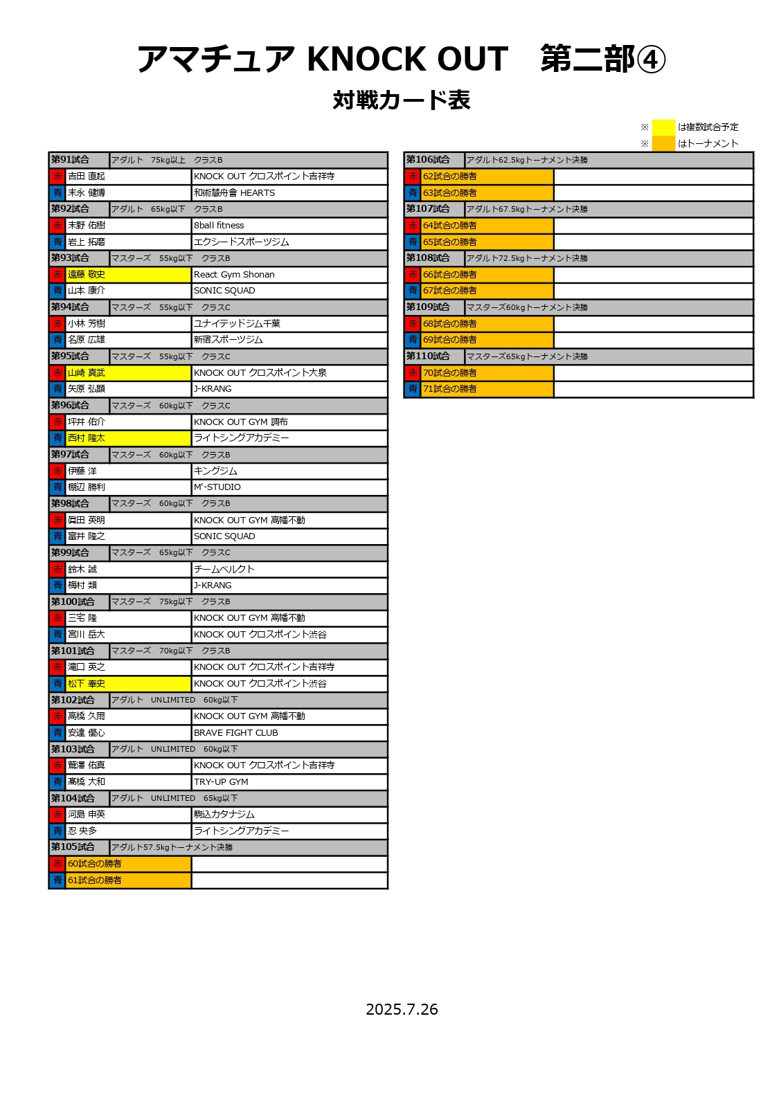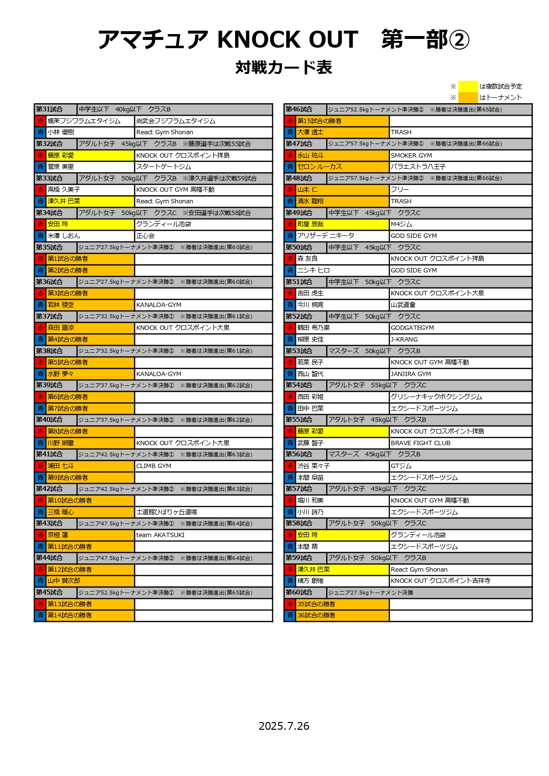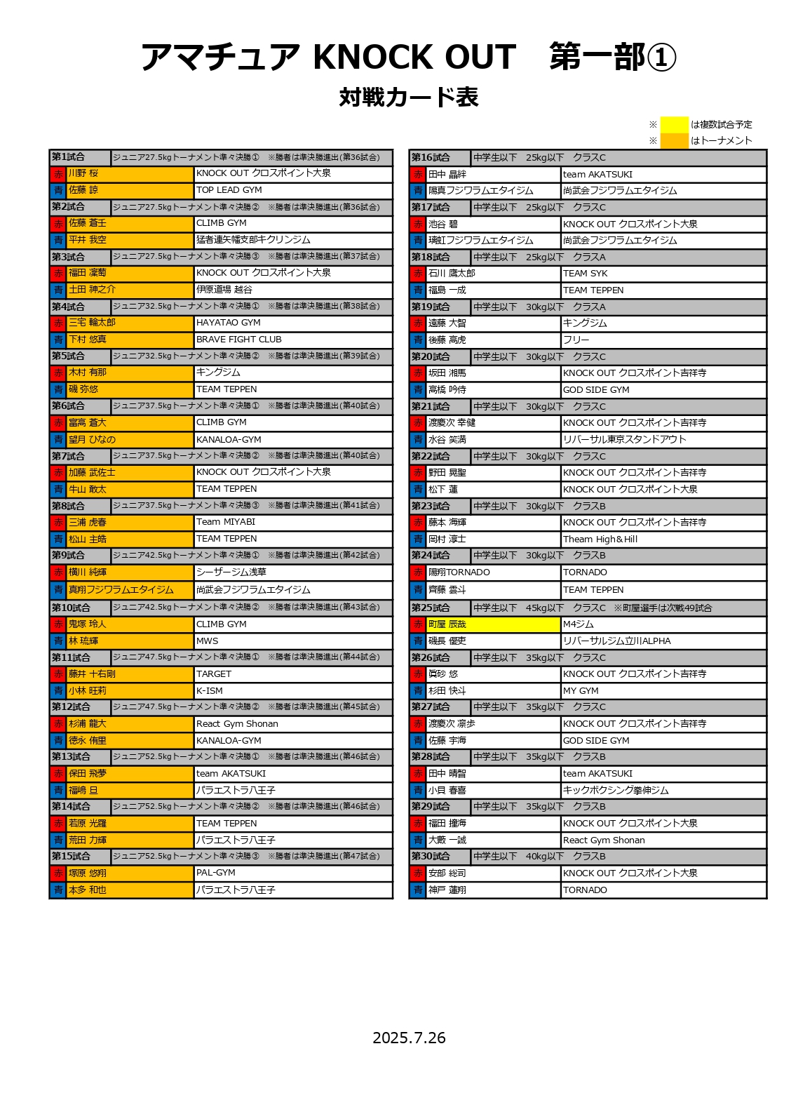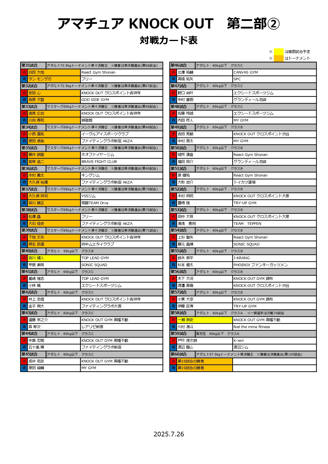 ▶選手・セコンドの皆様は、試合が終わりましたら順次ご帰宅ください。