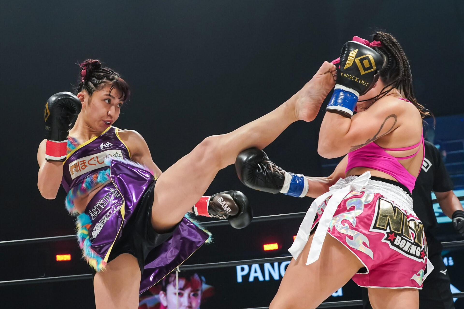 ぱんちゃん もともとは蹴り中心のスタイルだったんですけど、前十字靱帯断裂のケガをしてから1年間蹴れなかったりして、可動域も狭くなって以前みたいには蹴れなくなったんです。もともとパンチも出してたんですけど、蹴りがあるからパンチが当たるわけじゃないですか。今回は逆に、フィジカルとかスタミナとかで圧倒的に勝っているわけではないので、蹴りに戻さないと勝てないなと思っていて。相手はフィジカルも強いので、やっぱりテクニックで勝負しないとなと思ってるんですよ。それもあって、蹴り中心に戻して頑張っています。パンチは、試合になったら出るので(笑)。