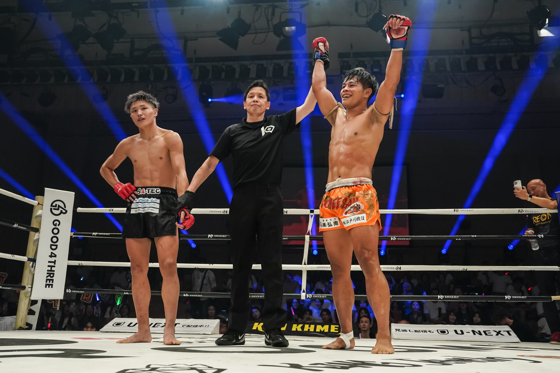 久井 何ですかね。「ハイキックとかはいらん!」っていう指示やったんですけど、試合中に「当たる」って思って打って、それでもらったので。あんまり作戦通り動けてなかったですよね。