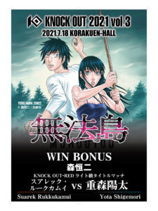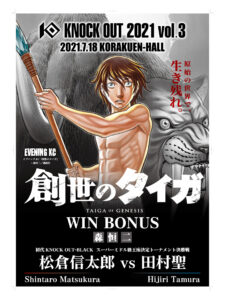 2021年7月18日(日)後楽園ホールで行われます『KNOCK OUT 2021 vol.3』の下記試合に「創世のタイガ賞」「無法島賞」として、総額100万円のWINボーナスが贈られることが決定いたしましたので、お知らせいたします。