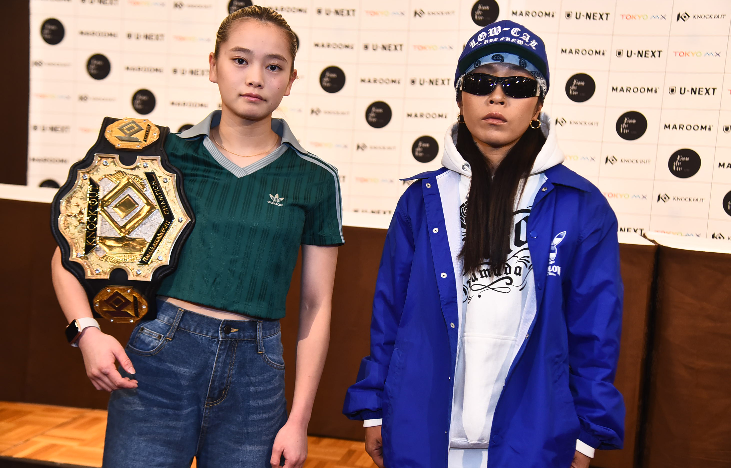 すでに決定しているKNOCK OUT-BLACK女子アトム級タイトルマッチで対戦する王者・Kiho(KNOCK OUT GYM 調布)と挑戦者の山田真子(GROOVY)が改めて会見に出席し、意気込みを語った。