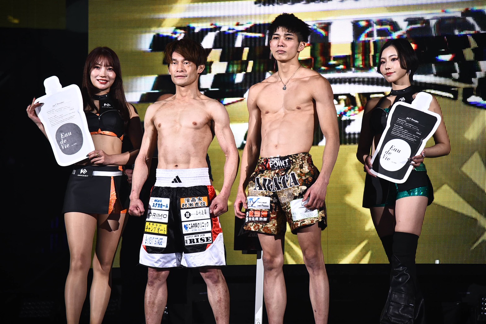 (明日どんな存在になりたいか)僕だけなんか無名な感じなんですけど、2試合とも衝撃的なKOをして新しいスターが出てくるような感じで、明日この会場に集まるお客さん全員をぶち上げたいと思います」