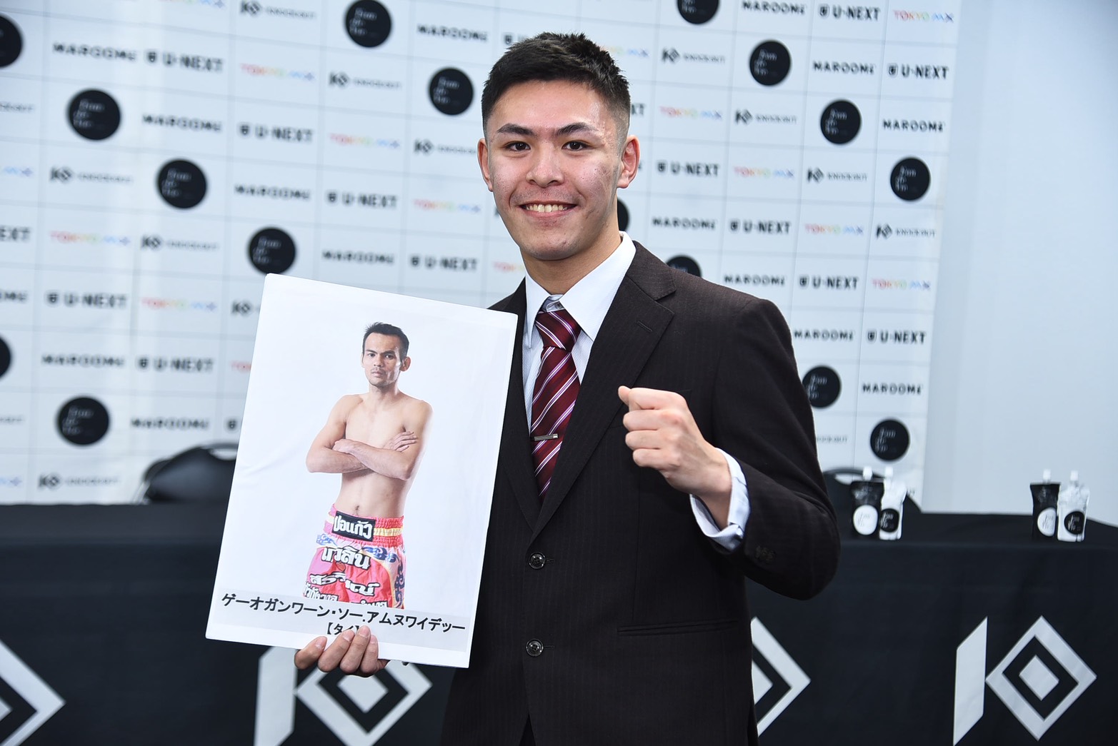 相手の印象については「オファーが来たときにもう驚きですよね。KNOCK OUT初参戦で、今勢いあるゲーオガンワーン選手が来て、テンションが上がって夜中の3時半まで起きてました(笑)。今までの試合を見て1番気を付けないといけないのはヒジとミドル」と警戒するも「しっかり練習でカバーして、自分もヒジ、ヒザ、ミドルもあるので、ムエタイをして勝ちたいと思います。センチャイ会長からは『がんばれ』と言われ、みんなで力を合わせて勝ちを狙っていきます」と問題ない様子。