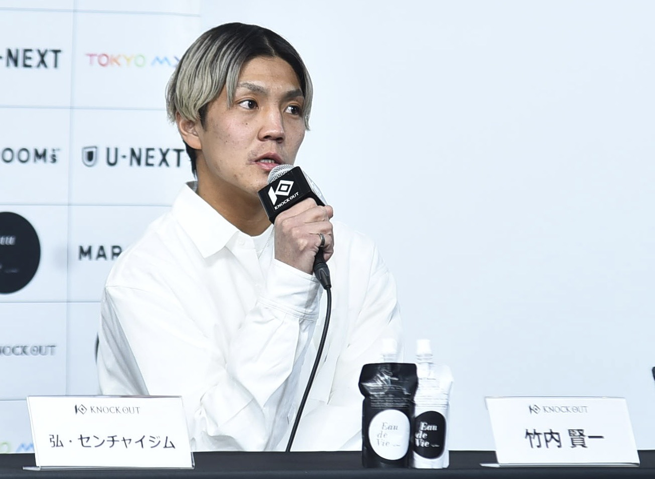 迅は「相手は他団体の元チャンピオンで、キャリアの僕の5倍以上あるから倒しがいのある選手を用意してもらったので普通に倒したいと思います」といえば、竹内は「前回5連勝している強い選手に何とか勝ったんですけど、今度の相手は2連続KOというめちゃくちゃ強い選手です。KNOCK OUTは僕のことが嫌いなのかなと思うくらい強い選手を用意するので勘弁してほしいです。でも、この試合で勝ったらベルトに近づけると思うので、胸を張れるつもりで挑みます」と気合十分。