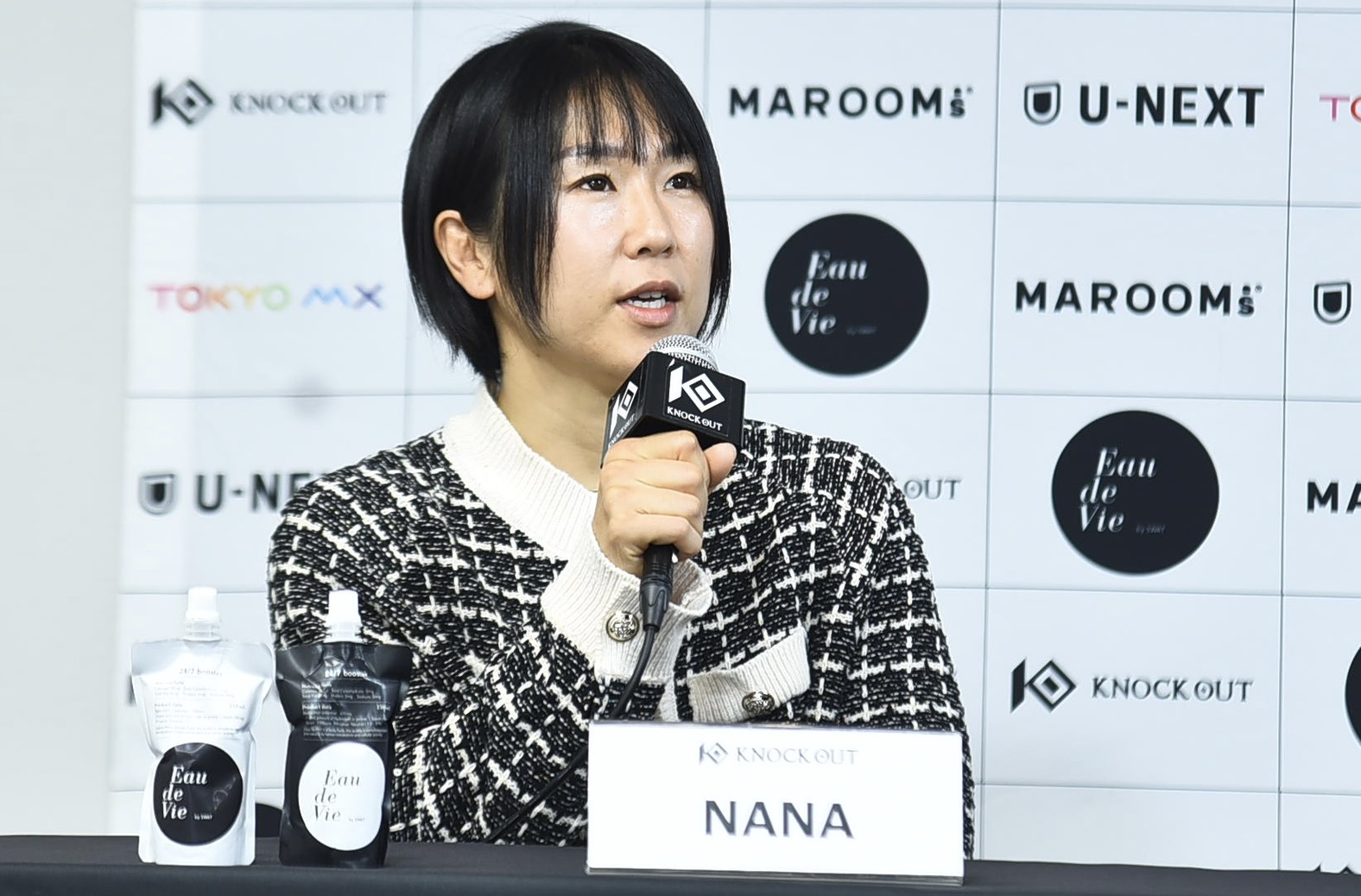 「初めて初めてKNOCK OUTに出させていただきます。私がずっと言っていることは、二刀流でやっていき、私の目標が天下を統一して世界一になることです。まずはKNOCK OUTで皆さんに辻井和奏を推していただけたらいいなと思っています。ベルトを見据えて、初戦で強いところをお見せできるように頑張ります。