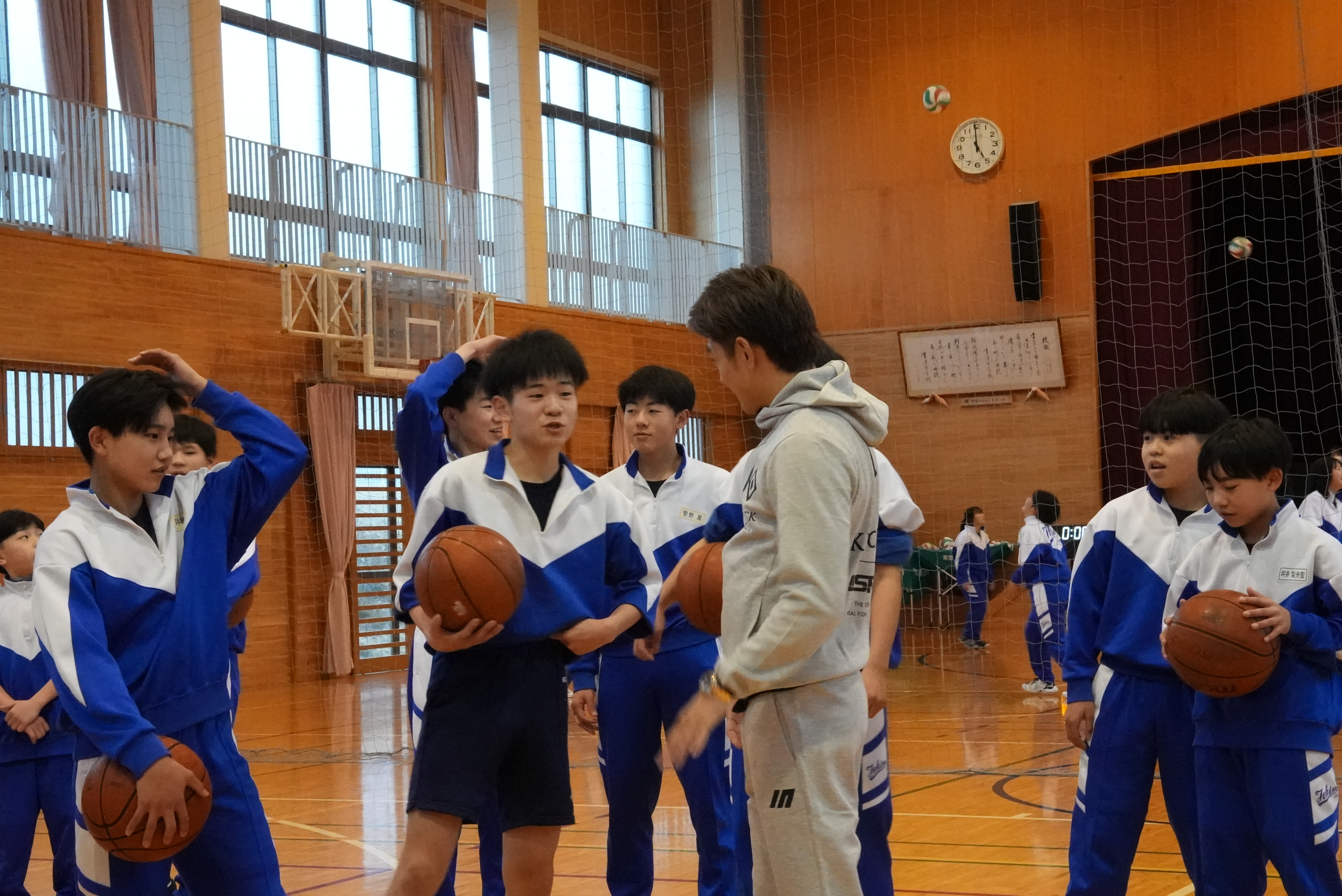 また、龍聖選手は卓球部・バスケットボール部・バレーボール部の生徒たちとスポーツ交流も実施。卓球対決やフリースロー対決、バレーボールのアタック・レシーブなどで交流し、生徒たちと楽しい時間を過ごしました。