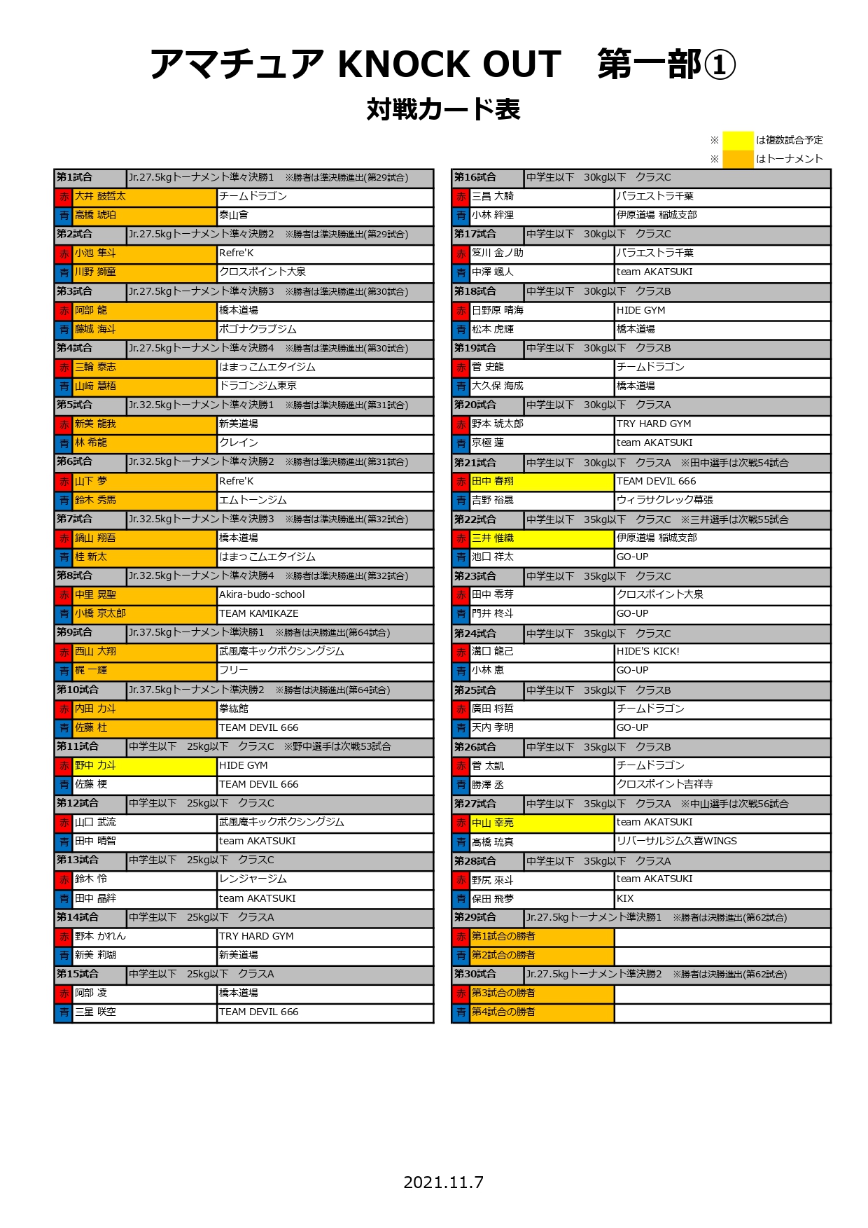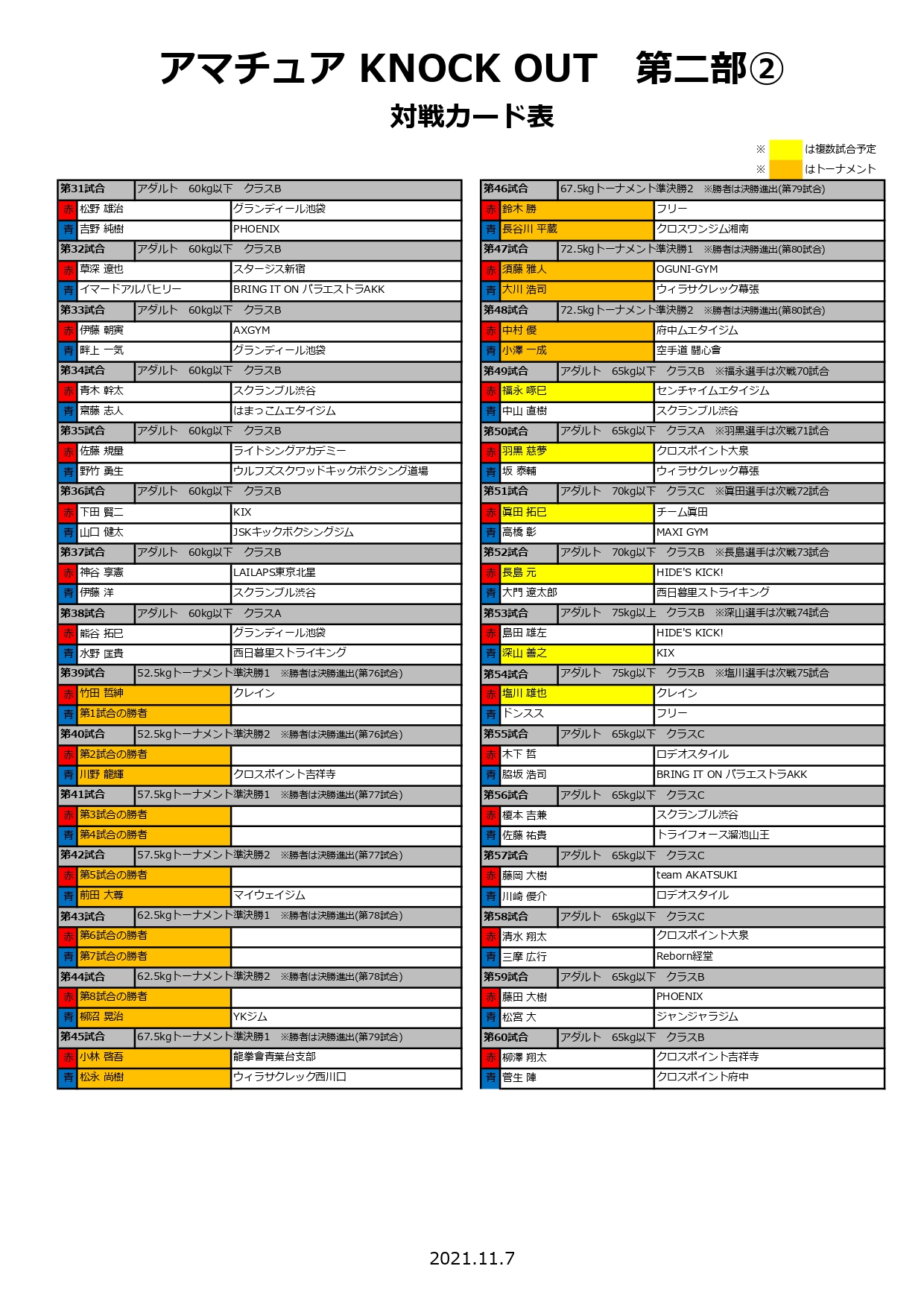 2021年11月7日(日)に新宿FACEで行われます「KNOCK OUTアマチュア」の対戦カードが決定いたしましたので、お知らせいたします。