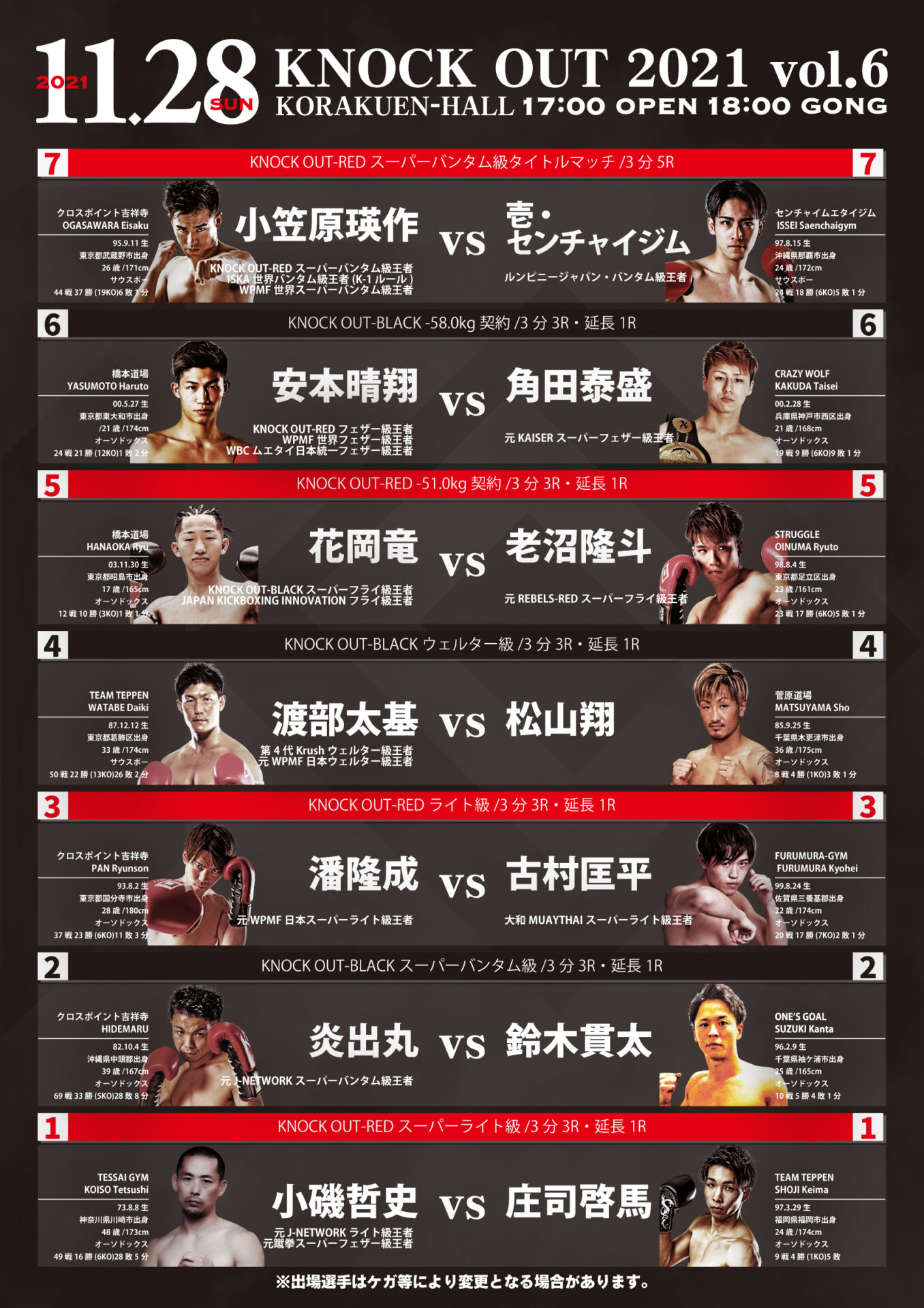 11.28 KNOCK OUT 2021 vol.6|全7カードの試合順が決定!