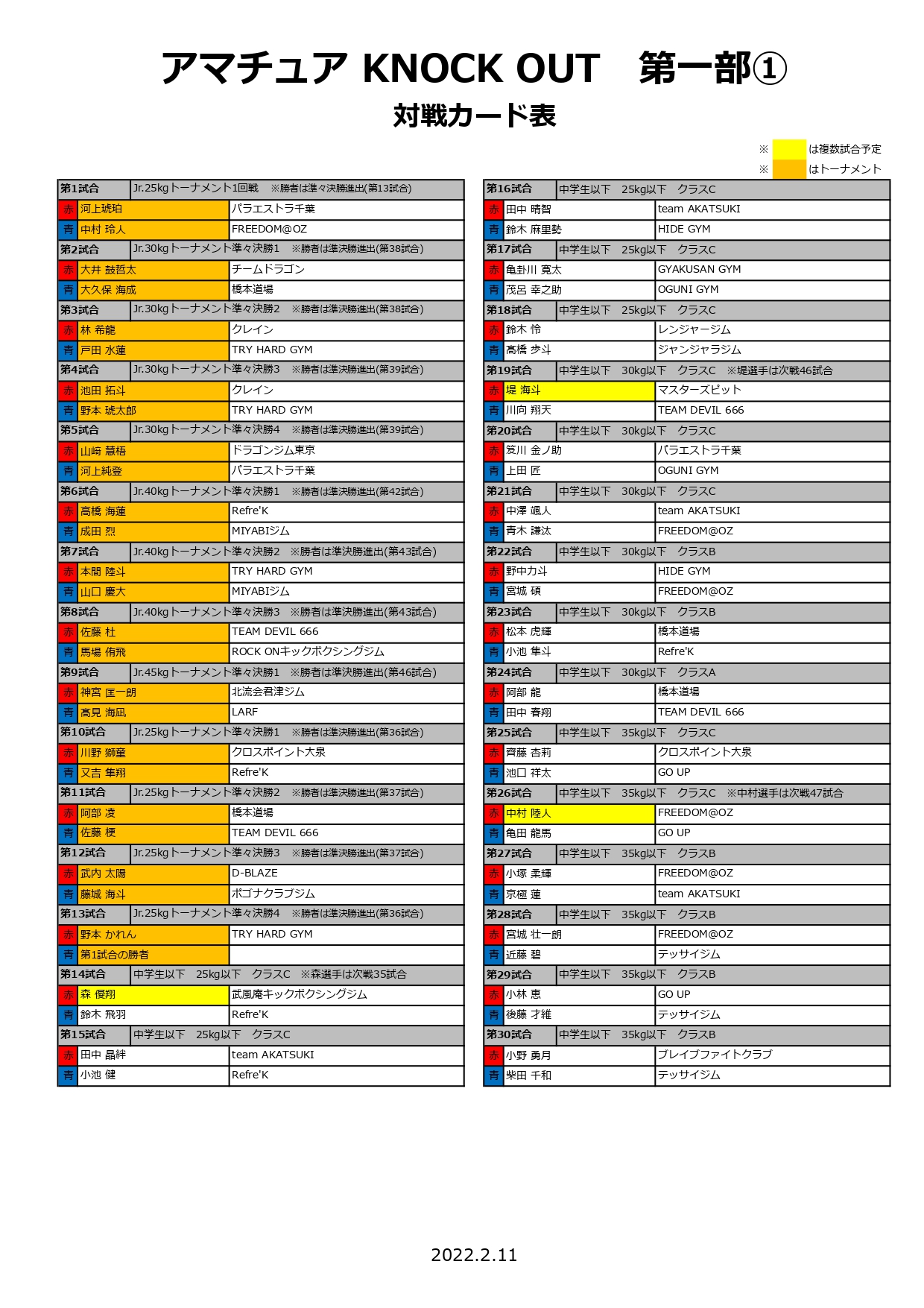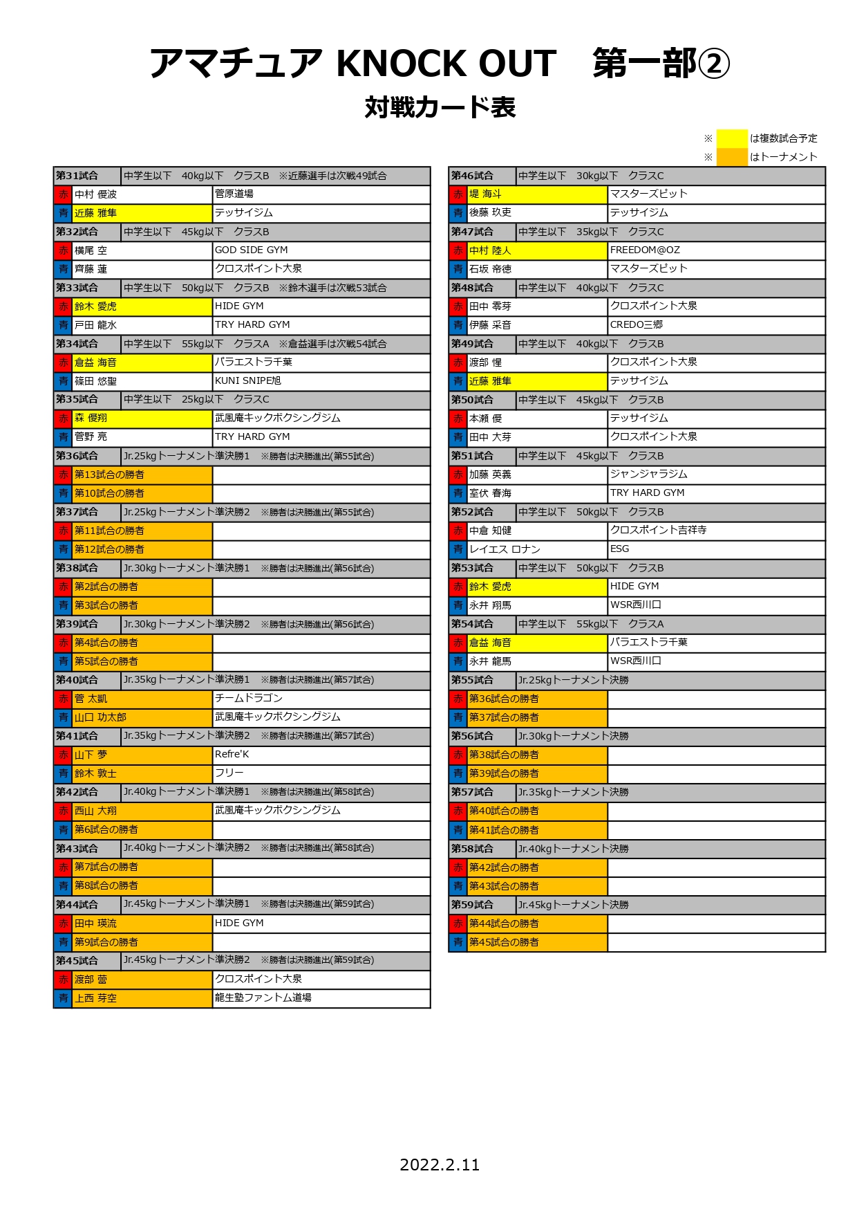 2022年2月11日(金・祝)に新宿FACEで行われます「KNOCK OUTアマチュア」の対戦カードが決定いたしましたので、お知らせいたします。