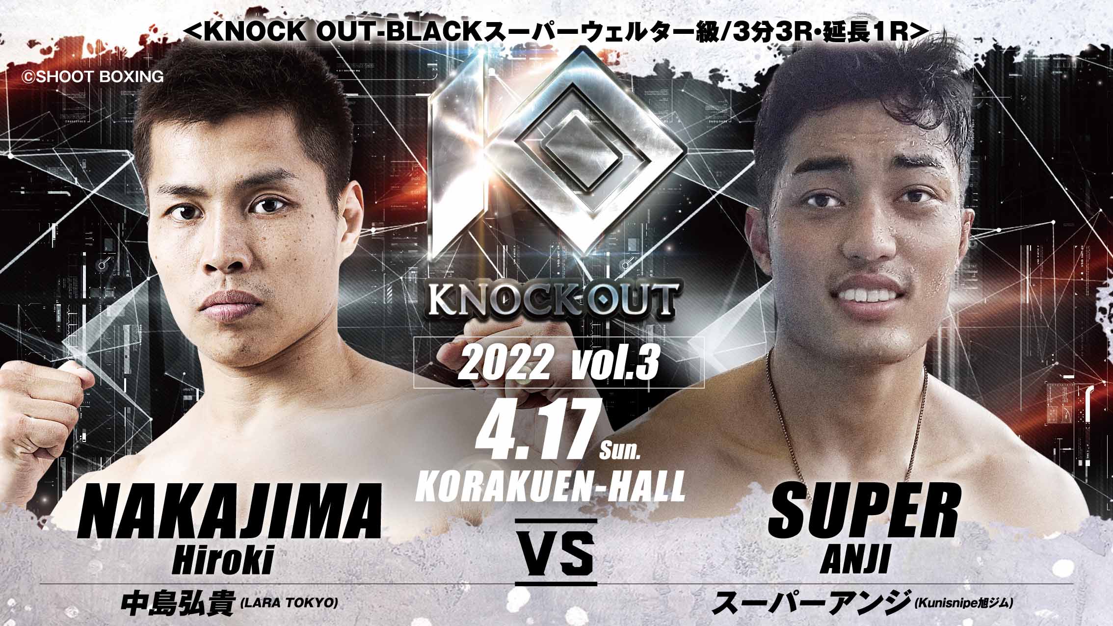 ■KNOCK OUT-BLACKスーパーウェルター級 3分3R・延長1R 中島弘貴(LARA TOKYO)vsスーパーアンジ(Kunisnipe旭ジム)