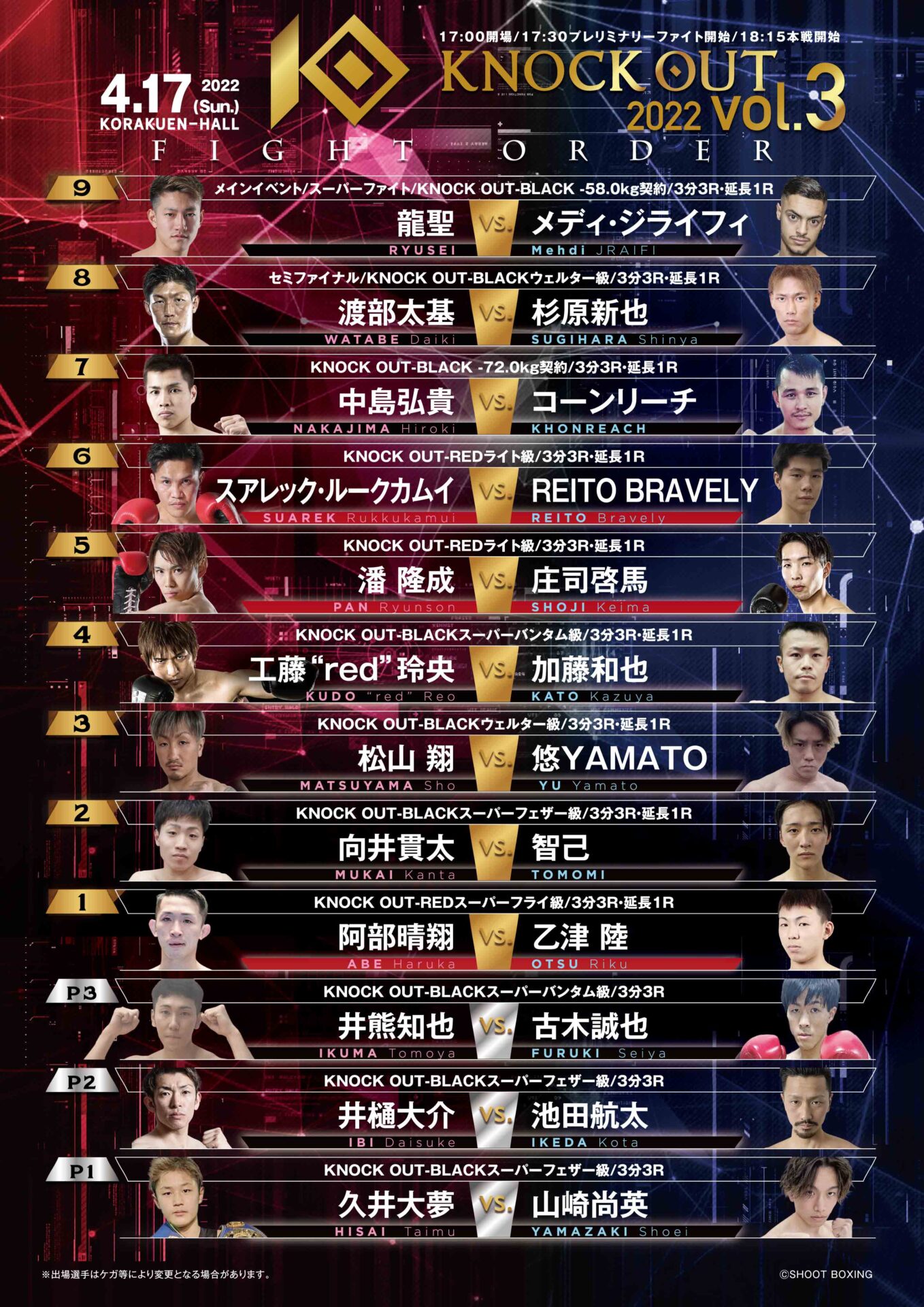4.17 KNOCK OUT 2022 vol.3|試合開始時刻変更のお知らせ