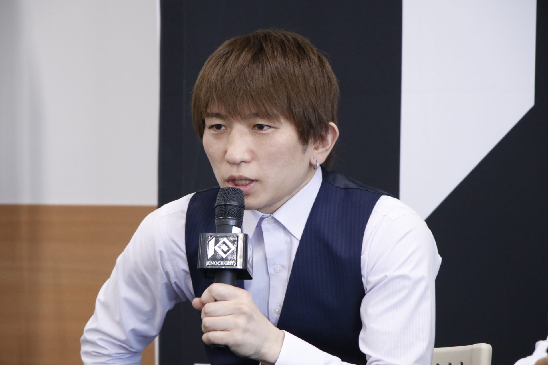 (自分の一番いいルール、階級での目標はある?)KNOCK OUTの65kgって空位ですもんね。BLACKの千裕君くらいですもんね。渡部選手とオファーをもらったときに、結果的に昨日も盛り上がってみんな満足してくれたかなという感じだったので、自分的にいい話だな、盛り上がるかなという試合は積極的にやっていきたいなという感じですね。