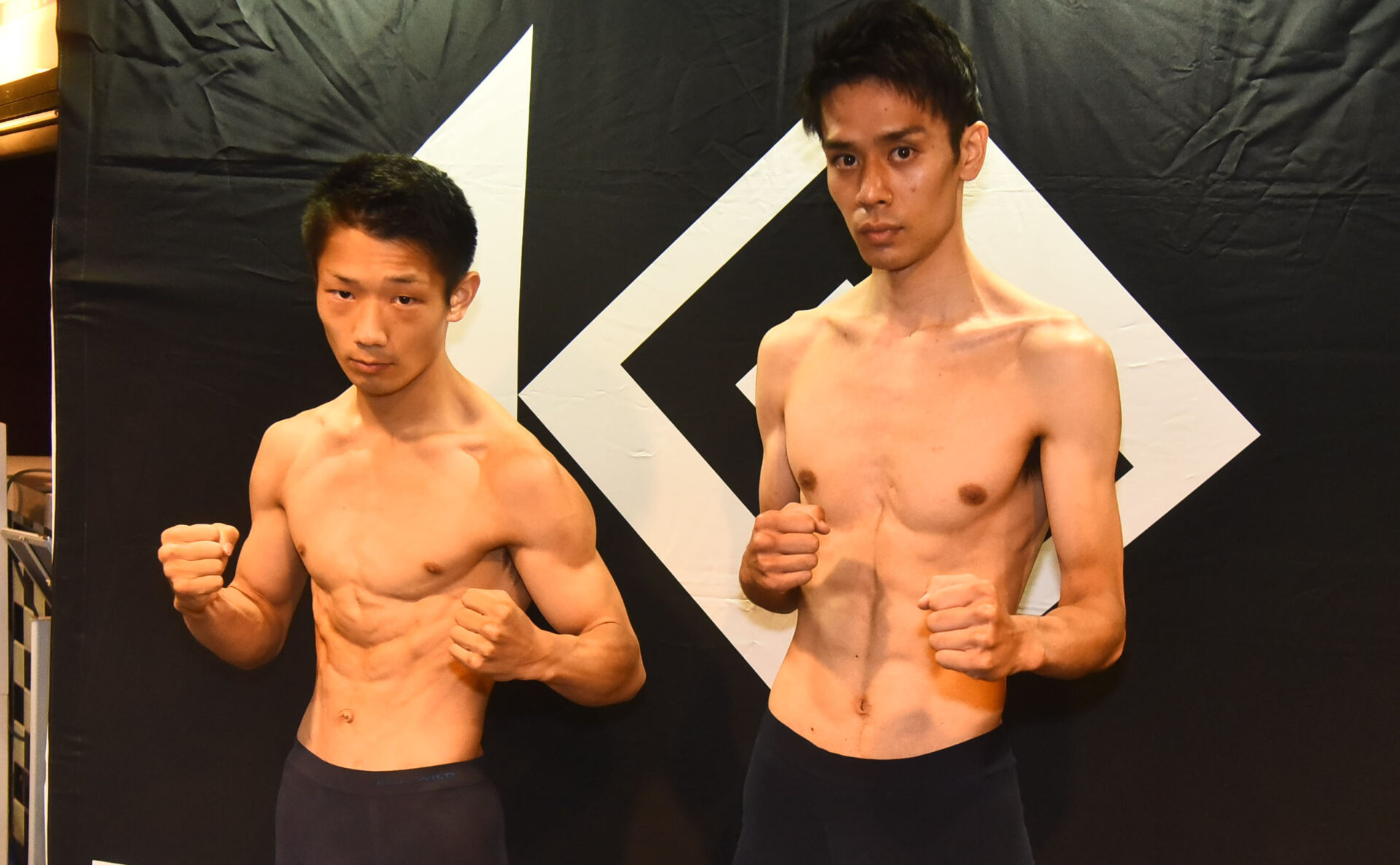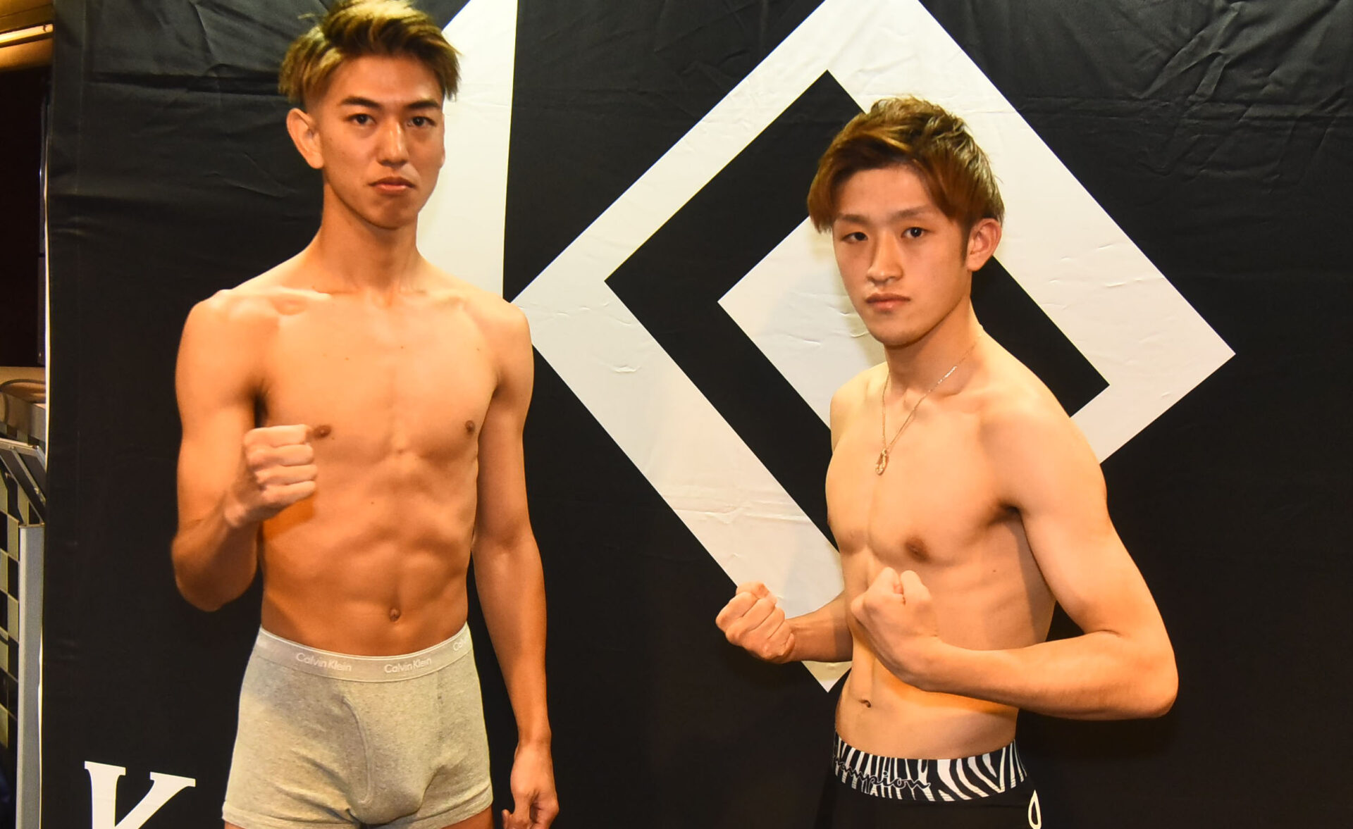 ▼第1試合 KNOCK OUT-BLACKフェザー級(-57.5kg)/3分3R 福田拓海(クロスポイント大泉)=57.15kg vs 山本響己(K&K BOXING CLUB)=56.5kg