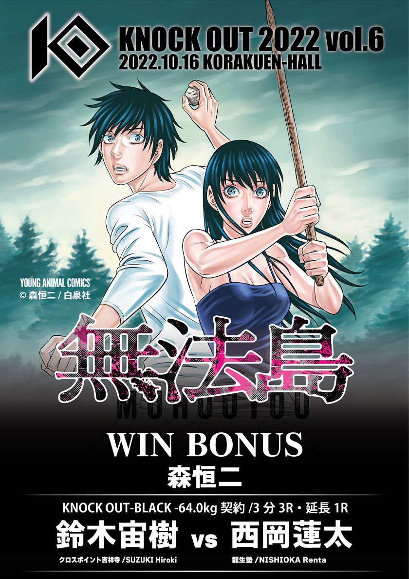 2022年10月16日(日)後楽園ホールで行われます『KNOCK OUT 2022 vol.6』の下記試合に「無法島賞」として、WINボーナスが贈られることが決定いたしましたので、お知らせいたします。