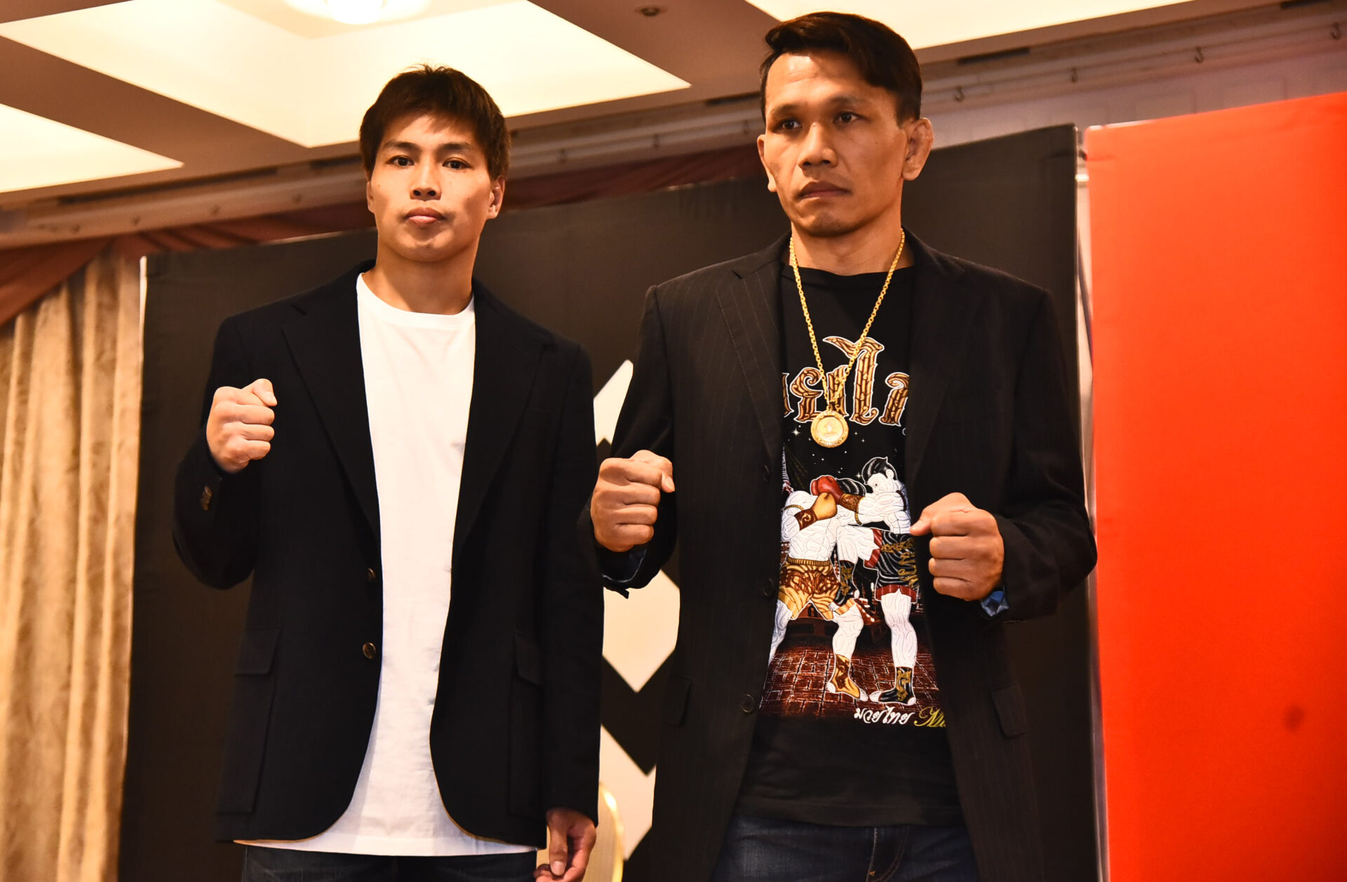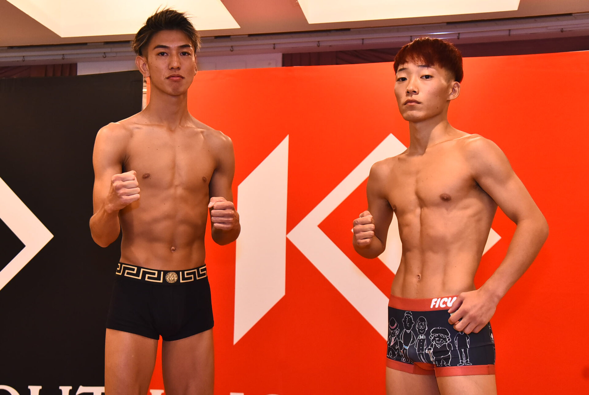 鈴木宙樹(クロスポイント吉祥寺)は63.7kg、西岡蓮太(龍生塾)は64.0kgジャストで計量をクリアーし、あとは試合のゴングを待つのみとなった。
