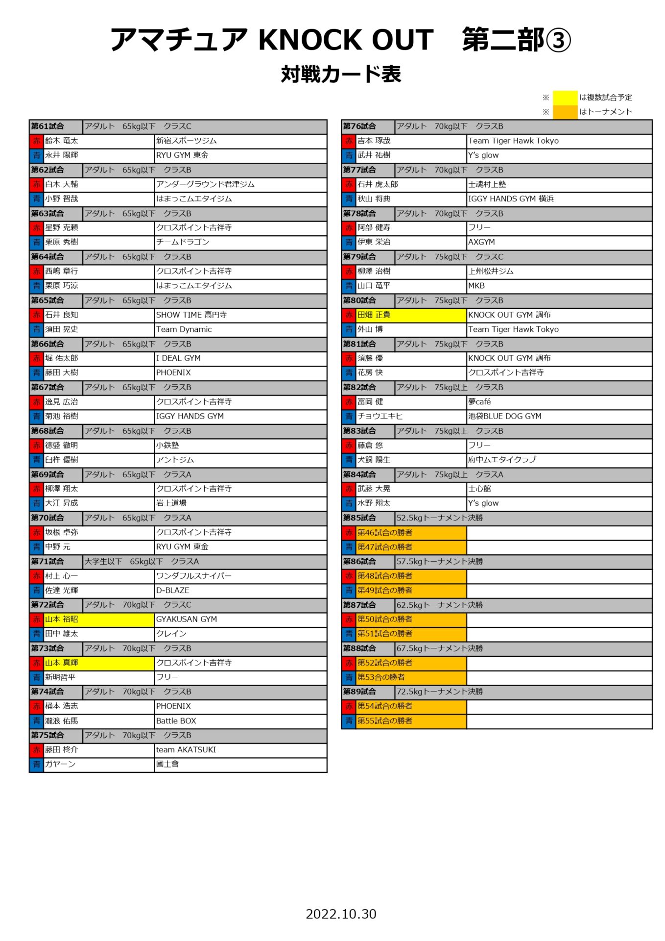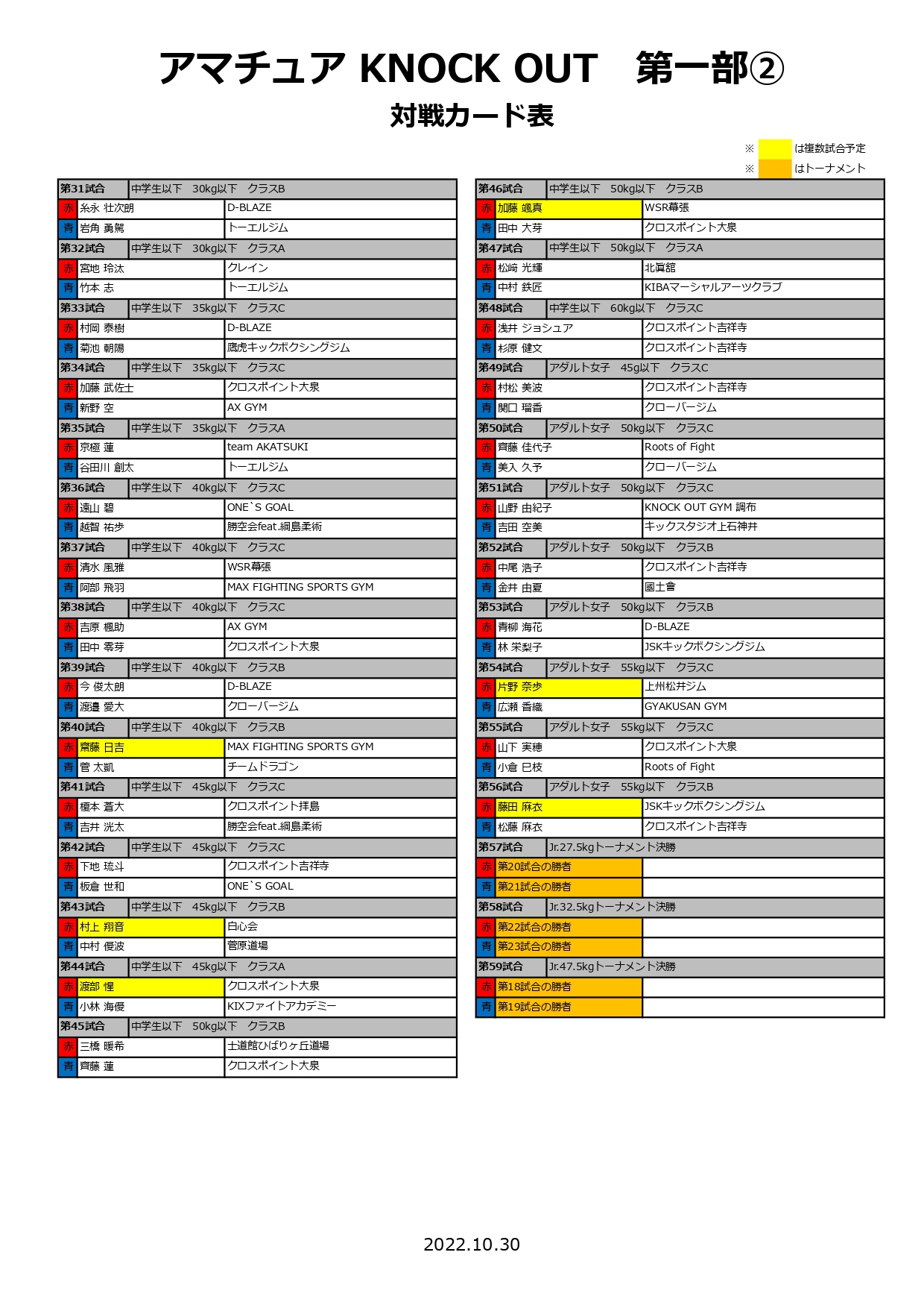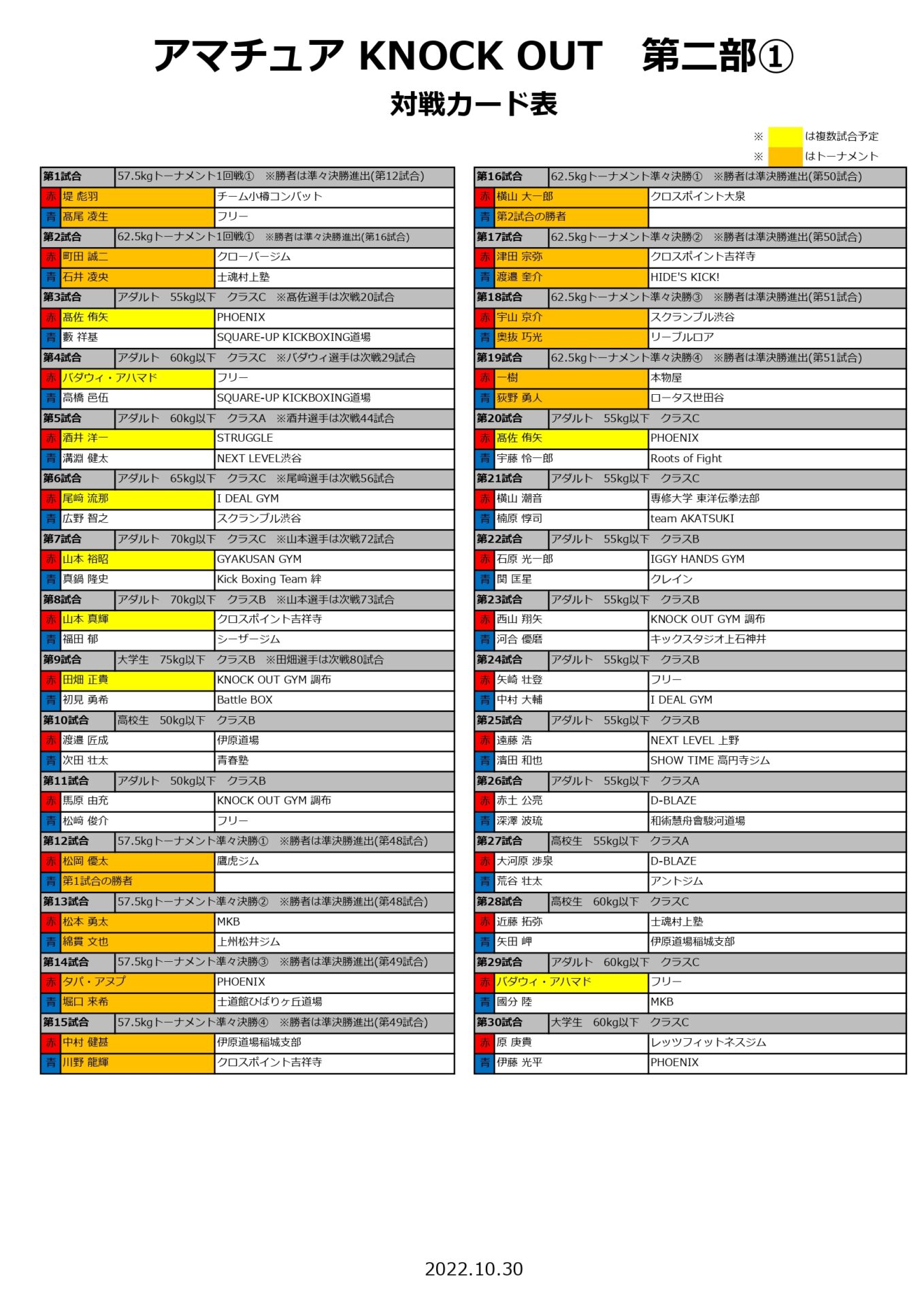 2022年10月30日(日)に新宿FACEで行われます「KNOCK OUTアマチュア」の対戦カードが決定いたしましたので、お知らせいたします。
