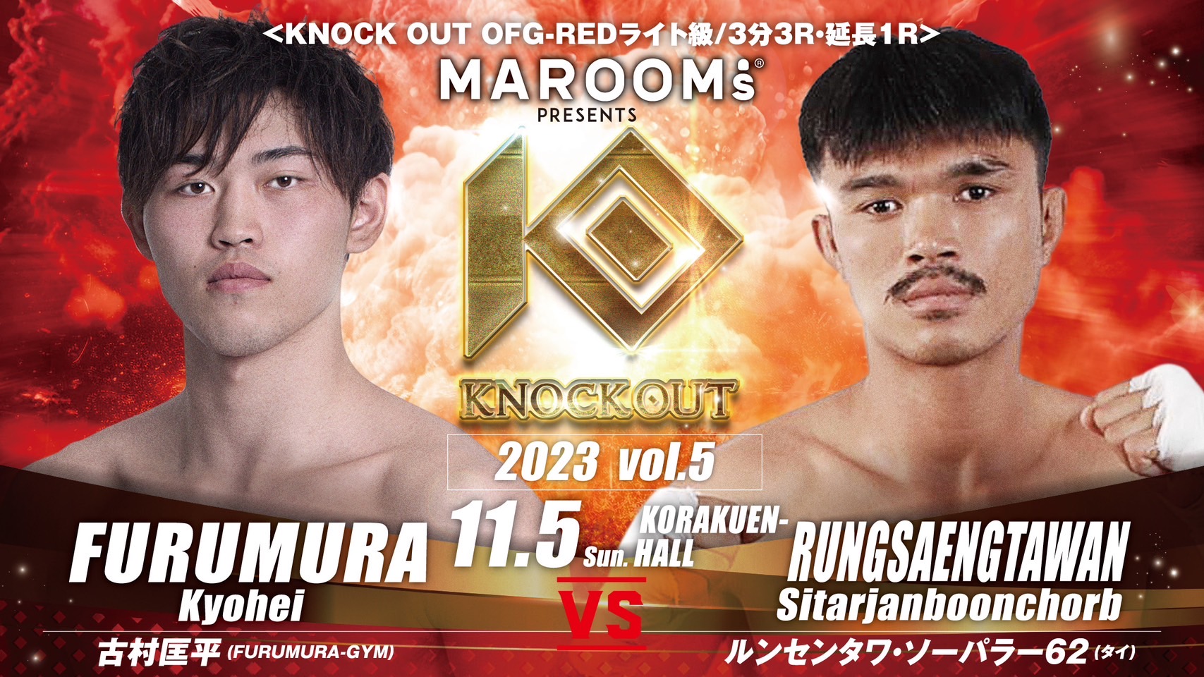 2023年11月5日(日)後楽園ホールにおいて開催するMAROOMS presents『KNOCK OUT 2023 vol.5』の追加対戦カードを発表いたします。