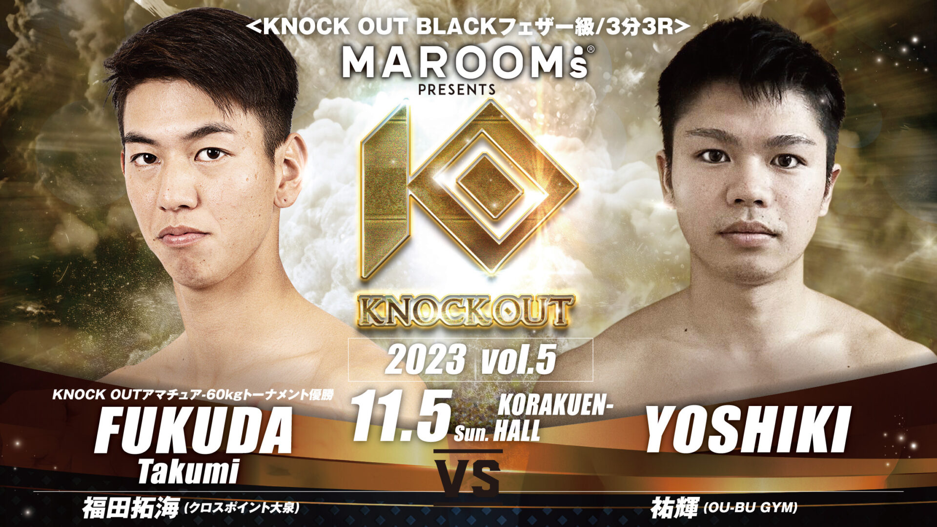 来る11月5日(月)後楽園ホールにおいて開催する、MAROOMS presents『KNOCK OUT 2023 vol.5』の新たなカード情報を発表!