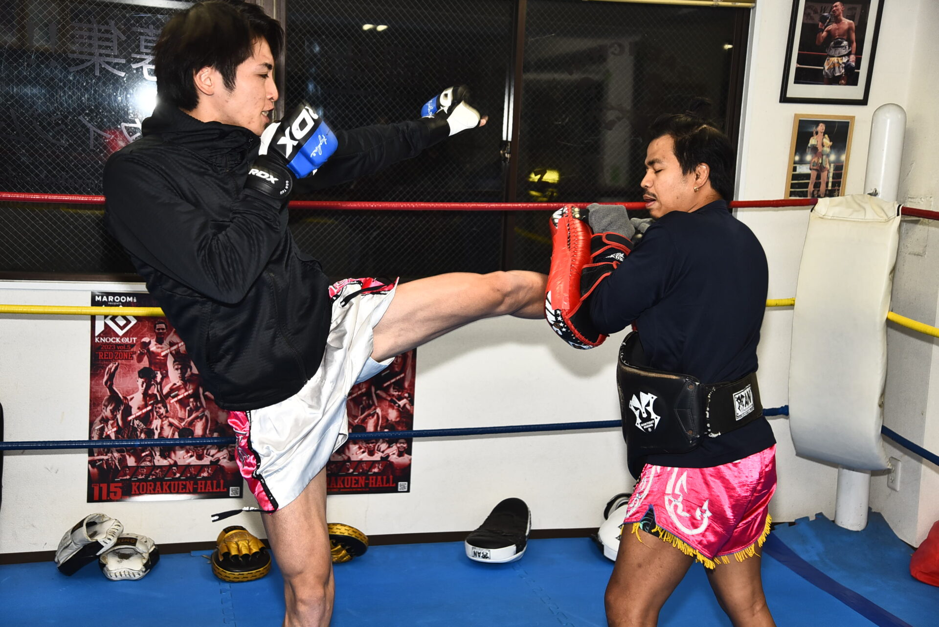 また、OFGについては「僕がプロデビューして5、6戦目くらいの時にタイで一度、OFG着用のMAX MUAYTHAIの試合のオファーがあってその試合は流れたのですが、その時からOFGに興味がありました。センチャイ会長は視野が広く、『OFGだとこのパンチが当たる。このパンチは良くない』とかグローブとOFGの違いを凄く理解し、OFGでの戦い方を勉強しています。会長が言われたことを今、当てはめて練習しているので、そういうことも含めて楽しみですね」と試合が待ち遠しい様子も見せた。