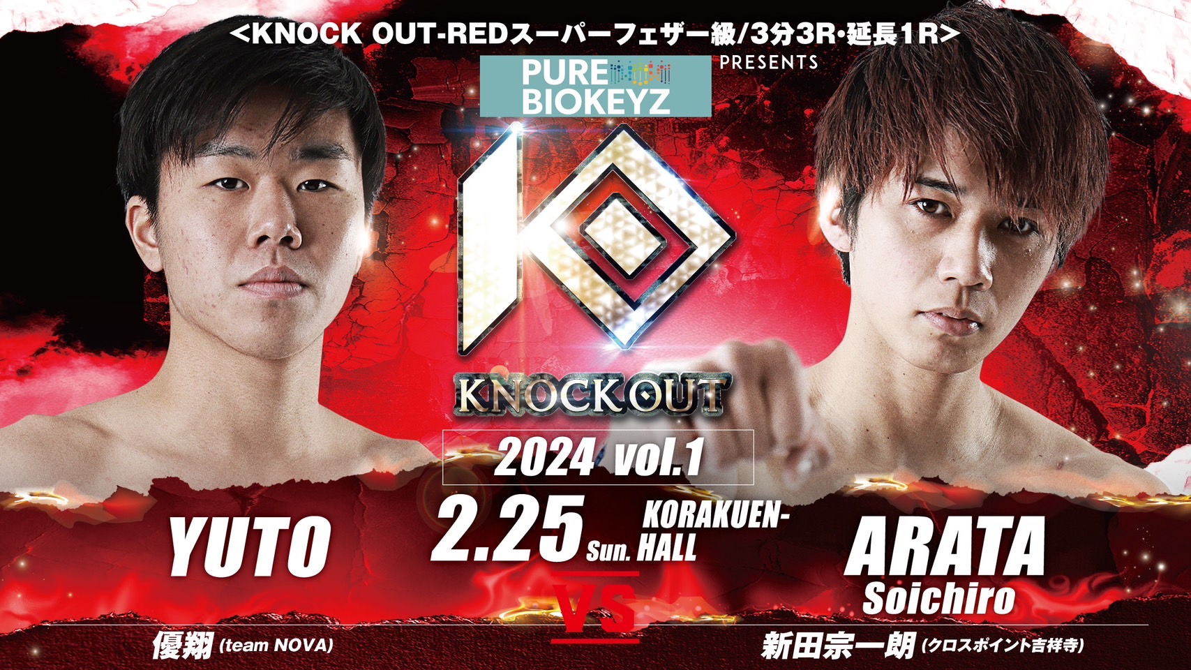▼KNOCK OUT-REDスーパーフェザー級 3分3R・延長1R 優翔(team NOVA) vs 新田宗一朗(クロスポイント吉祥寺)