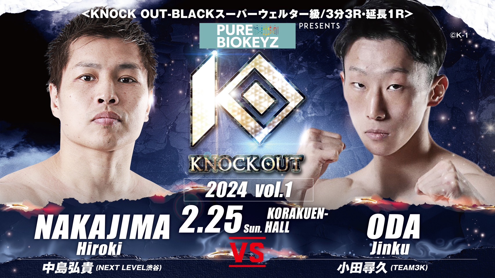 ▼KNOCK OUT-BLACKスーパーウェルター級 3分3R・延長1R 中島弘貴(NEXT LEVEL渋谷) vs 小田尋久(TEAM3K)