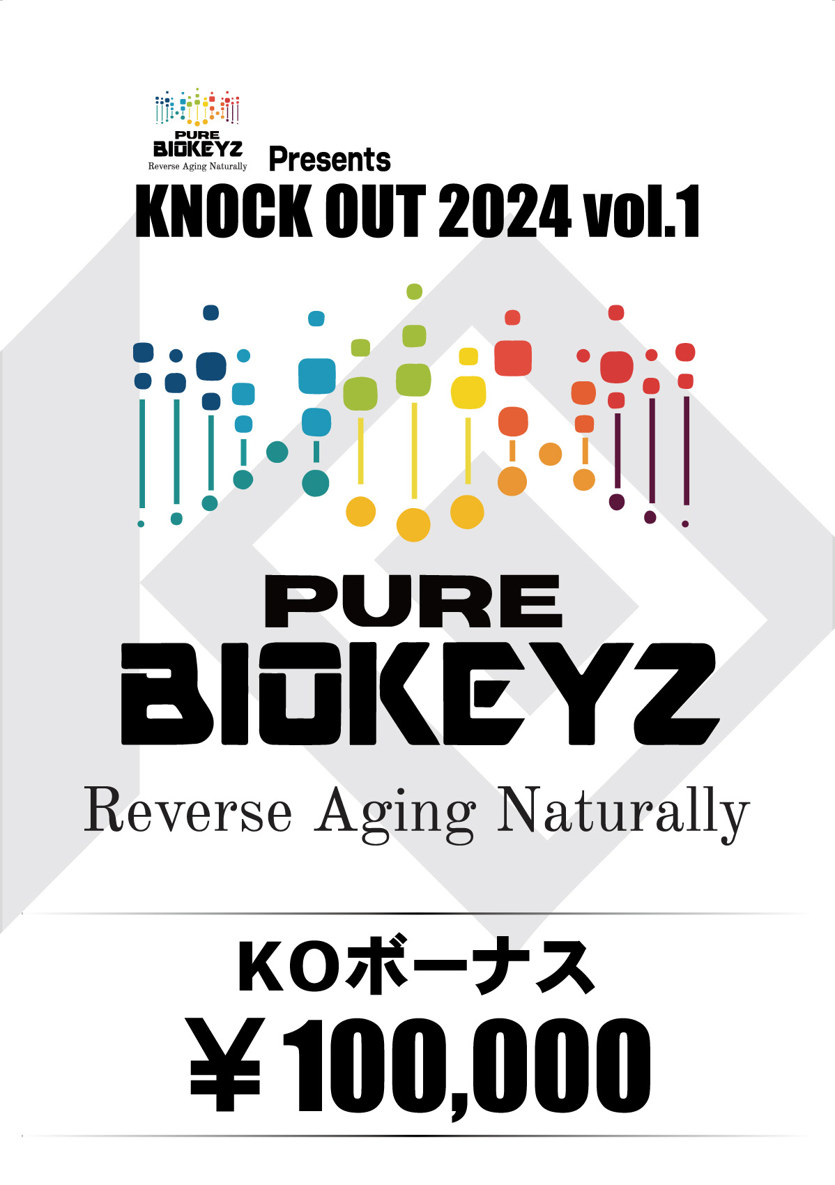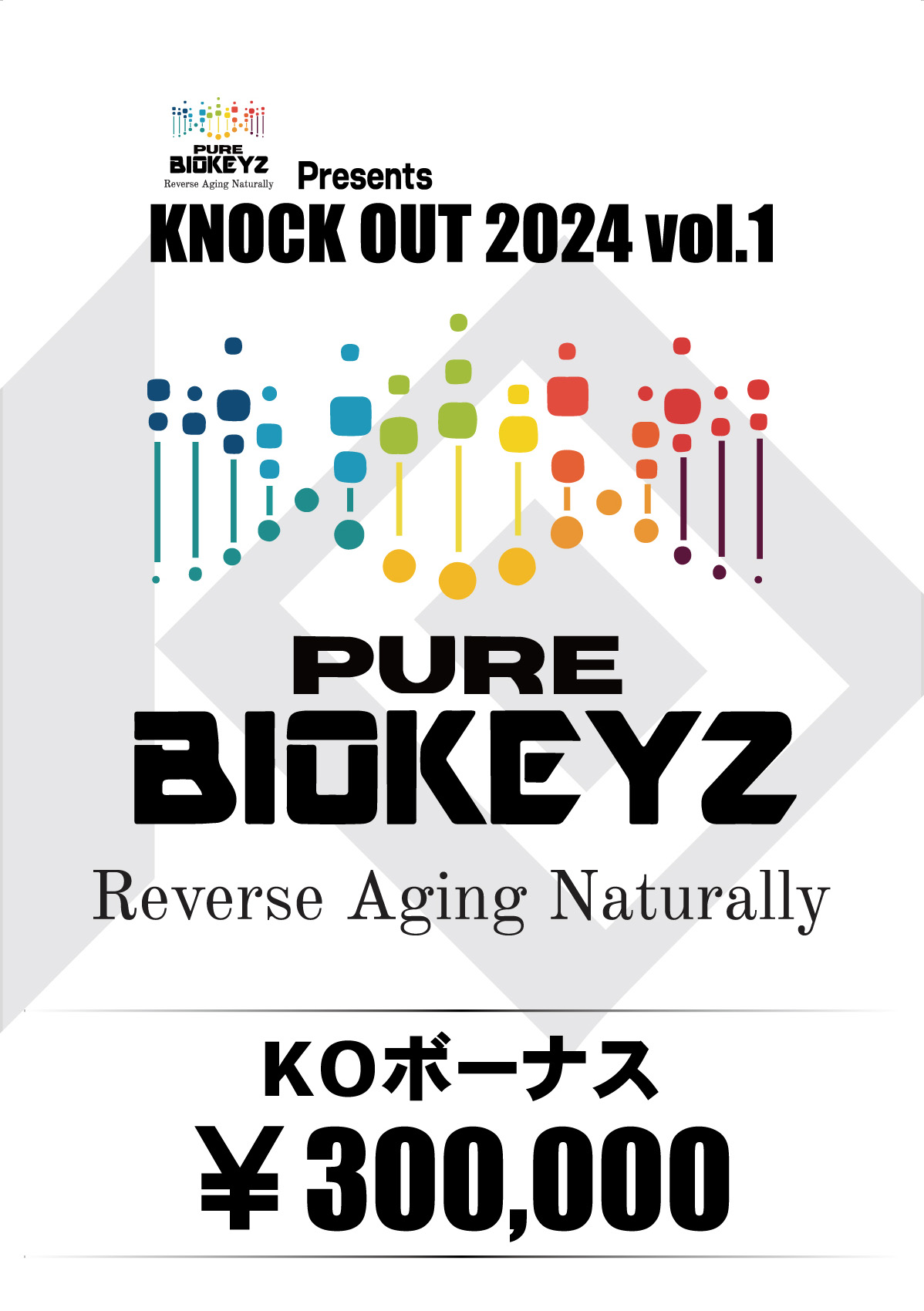 2024年2月25日(日)後楽園ホールで行われるPURE BIOKEYZ presents KNOCK OUT 2024 vol.1では、全試合対象の「KOボーナス」が贈られます。