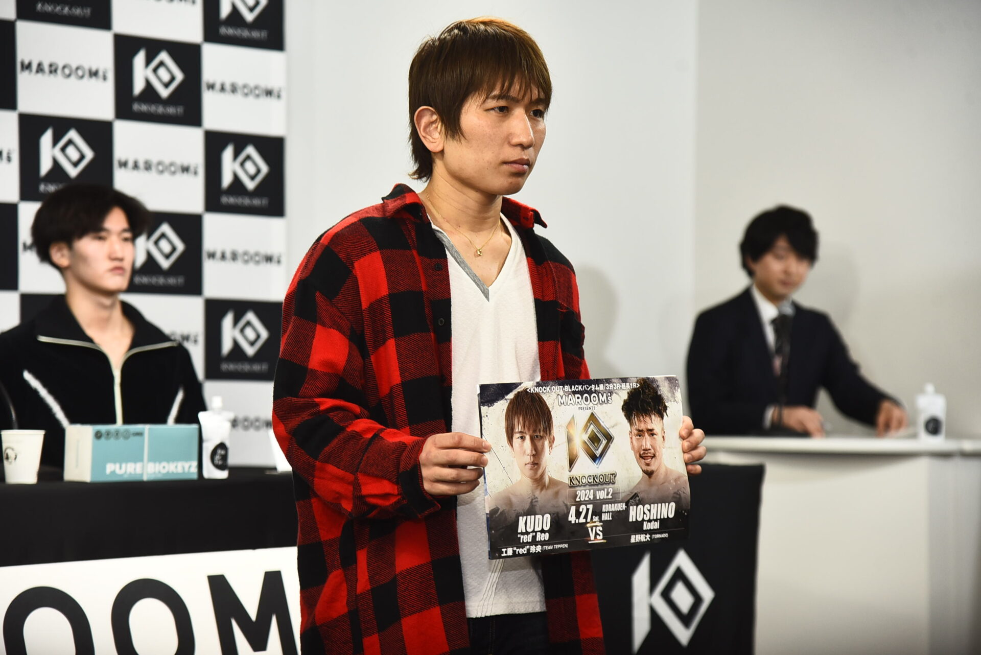 工藤は昨年12月のKNOCK OUTで前田翔太に敗れ今回再起戦。対する星野はREBELSアマチュアで戦績を重ね、REBELSでプロデビュー。KROSS×OVERなどのリングで戦績を重ね12戦5勝(5KO)6敗1分。「星野選手はガンガン前に出るファイターでいい選手なので、工藤選手と手が合うと思います」(山口代表)。