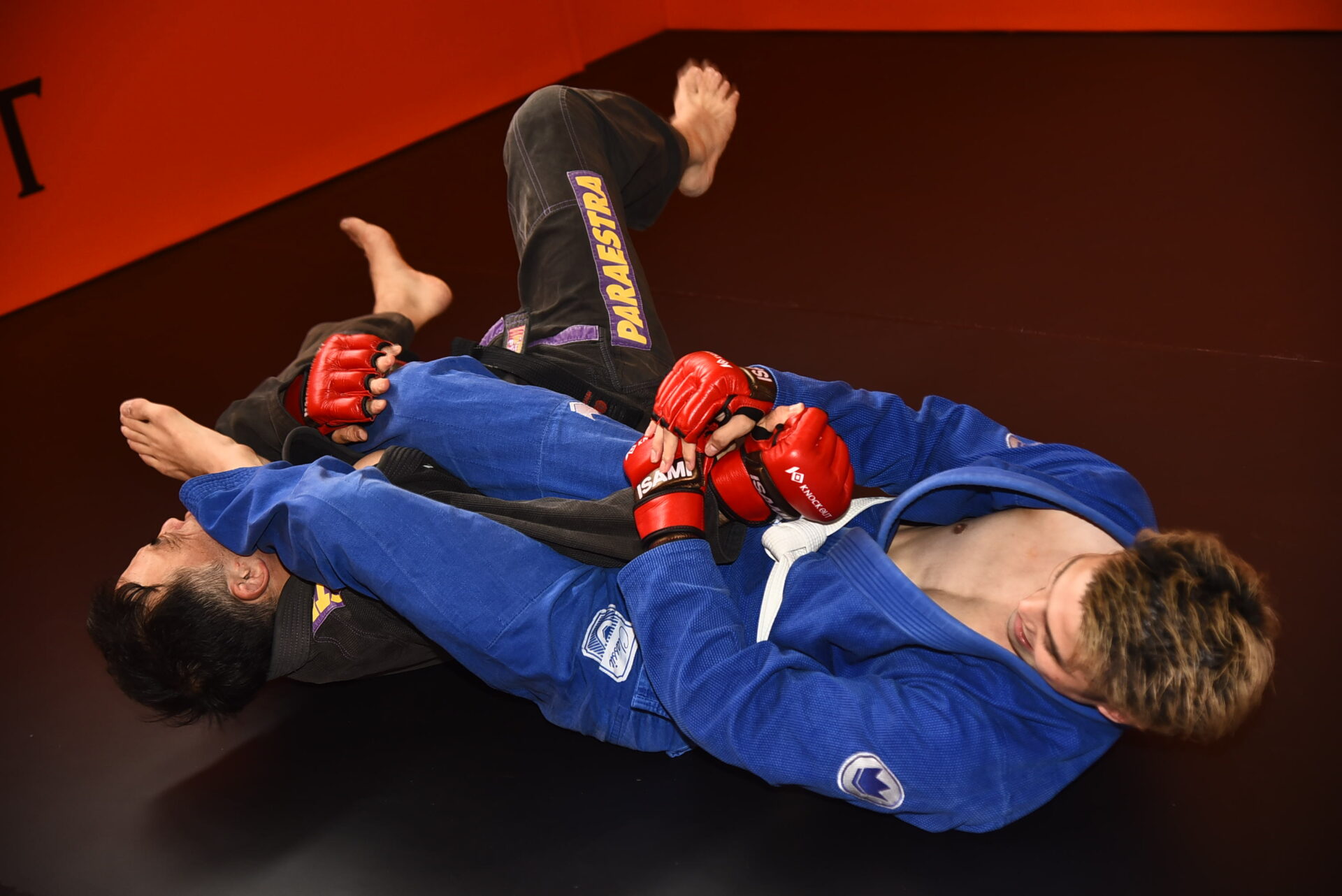 寝技は認められないルールだが、なぜか青色の柔術衣着用で登場した栗秋は、クロスポイント吉祥寺の柔術インストラクターの高谷聡を相手にMMAの3本勝負をスタート。一本目では高谷のタックルでテイクダウンからのスリーパーを極められて栗秋は即座にタップ。2本目では高谷のタックルを潰して背後に付いた栗秋は、バックマウントからのパウンドでタップを奪う。3本目では栗秋が器用にも飛びつき腕十字を見舞って一本勝ちして、公開練習を終えた。