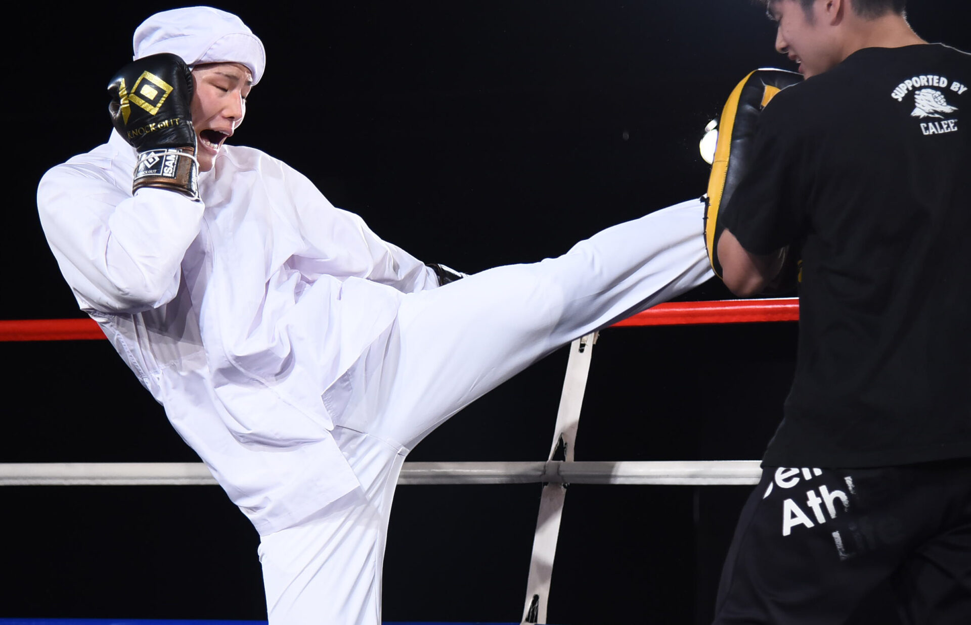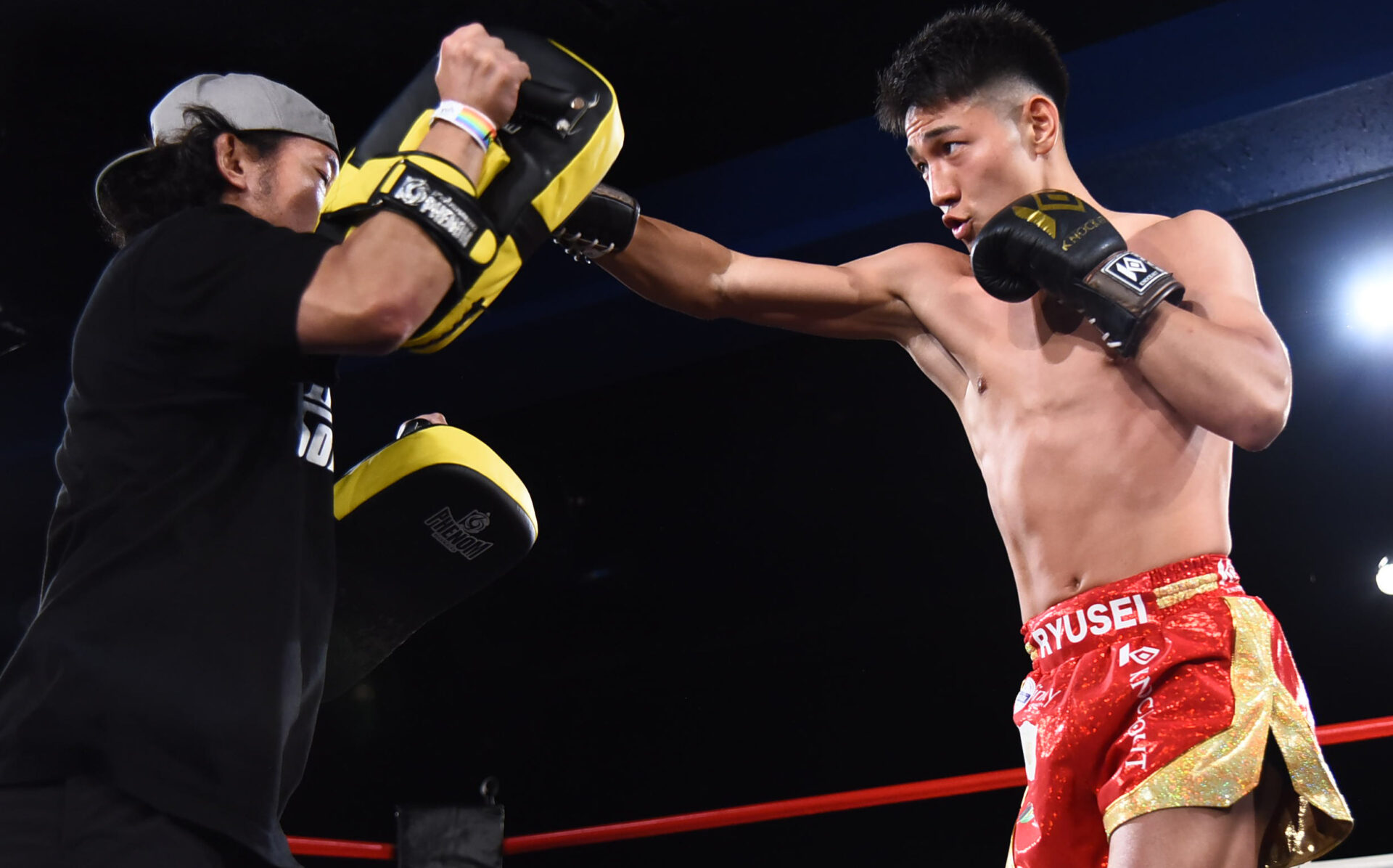 割烹着を着たままミット打ちを披露した山田に対し、龍聖も迫力のミット打ちで好調をアピールした。