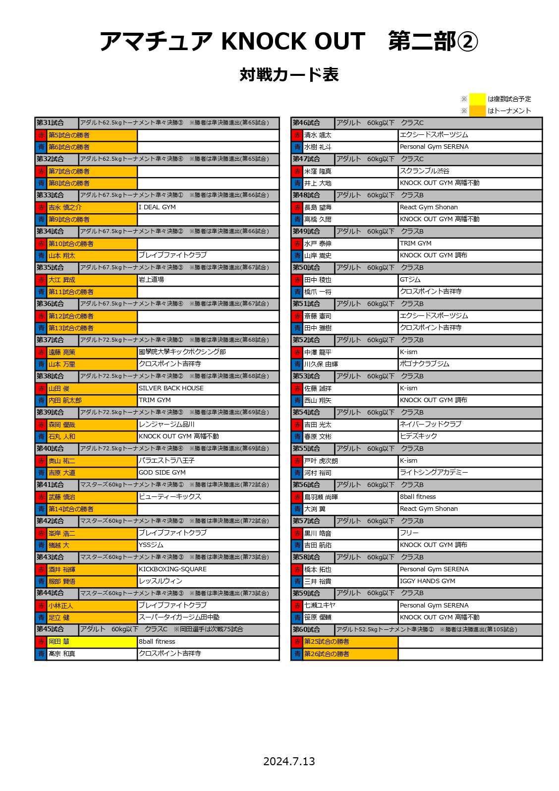 2024年7月13日(土)に新宿FACEで行われます「KNOCK OUTアマチュア」の対戦カードが決定いたしましたので、お知らせいたします。
